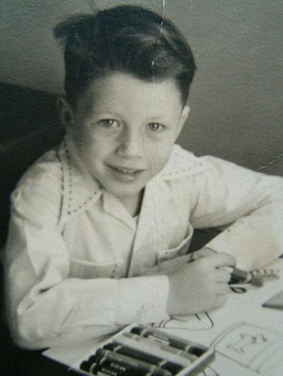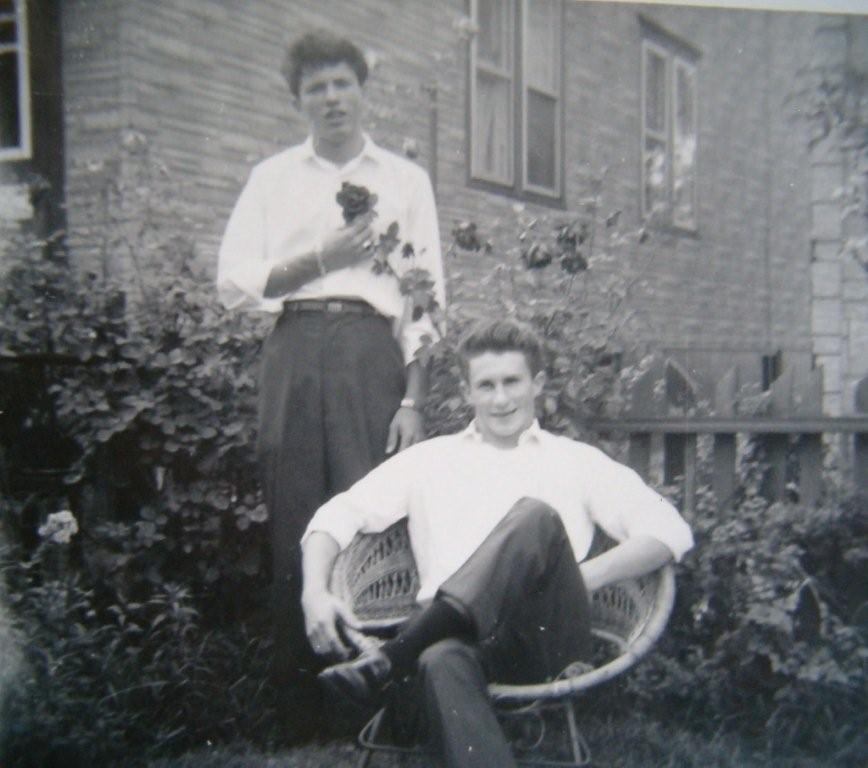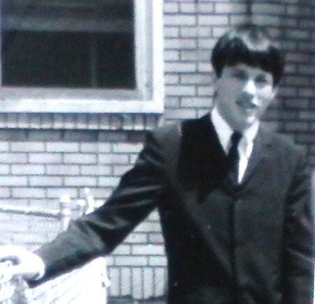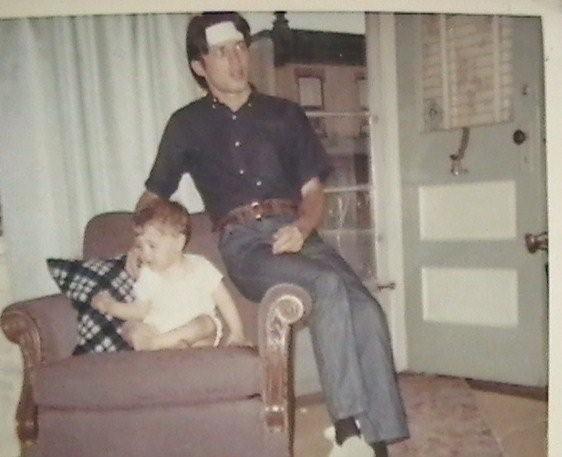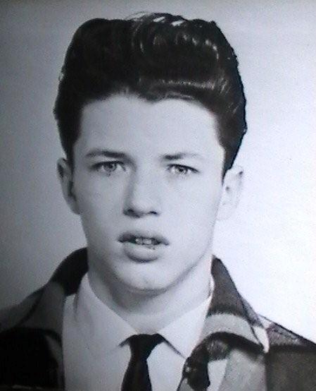 These were the days of listening to Elvis and copying the hairdo! The split lip, sadly, stems from a disagreement in high school with a bully, something that continues into today's world. |