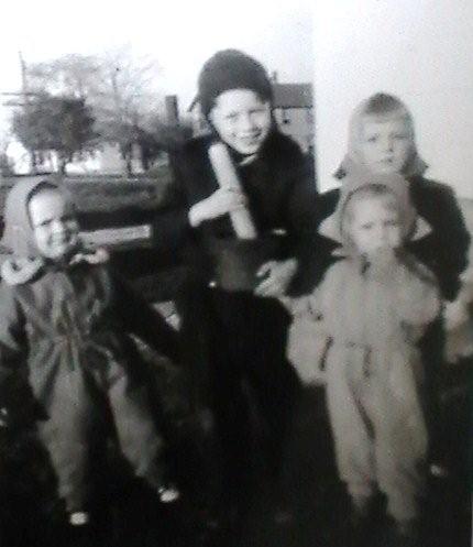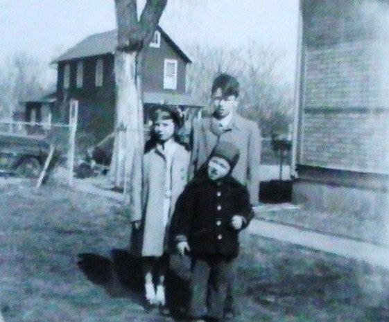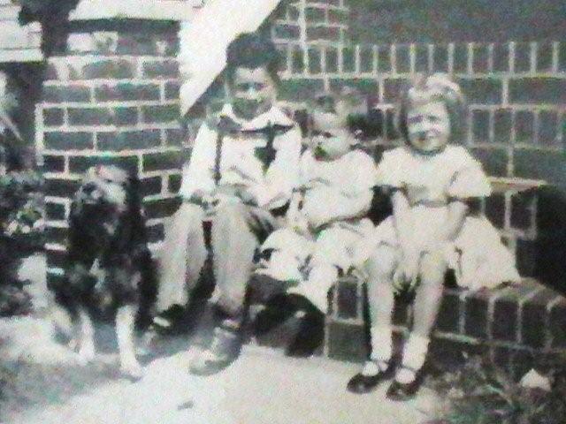 The Terrible Three", Joe Seddon, brother Bruce and sister Marilynne. The dog is Tuffy who was stolen shortly after this was taken and we never saw him again.. |
