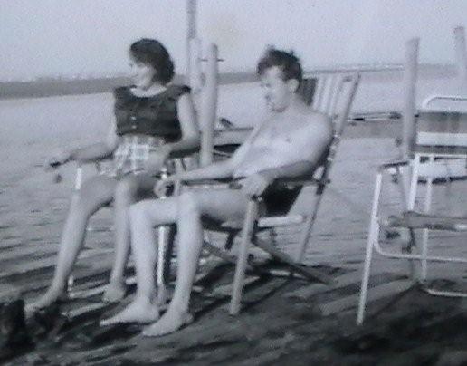 Joe Seddon Sr. and wife Florence on the dock at Avalon Bay. 1960`s. The Seddon kids learned to swim here and fish for flounders as well. |