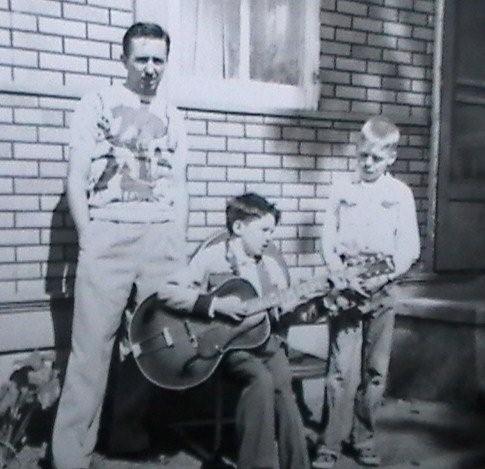 Joe Seddon Sr., Joe Jr. and Sonny Frett of Cramer Hill. The guitar, a Royce, was purchased from Don Di Lulu who also taught lessons. I still own this guitar though it has had several owners before being returned to me by a caring soul who thought i should have it back. |
