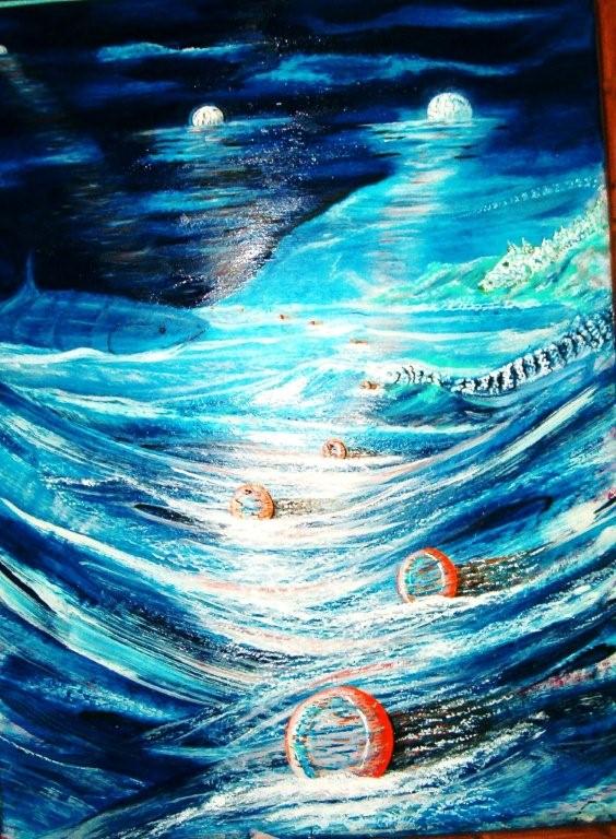 My version of a seascape titled Orange Spheres on a Blue Sea. |