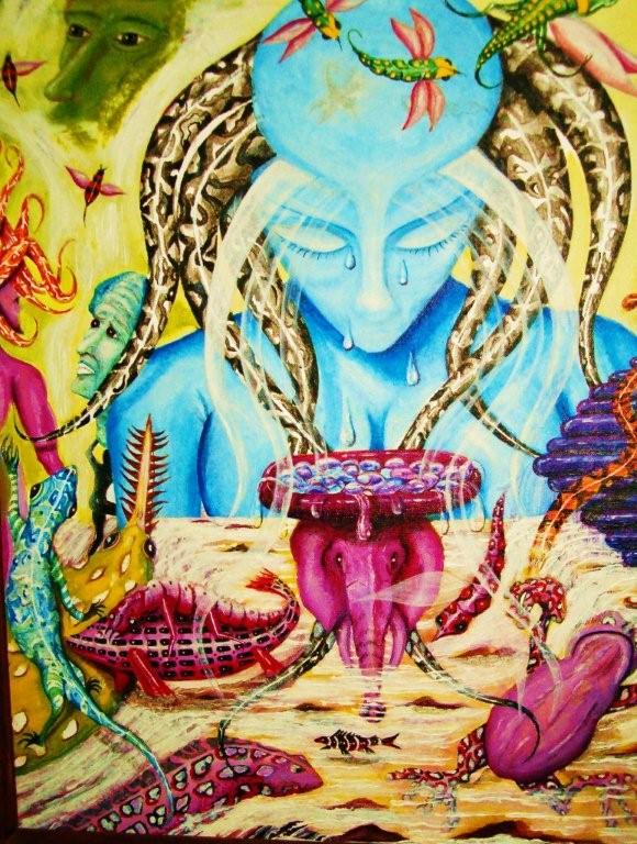 This piece was finished several years ago as I was in mourning over the death of my female boxer, " Pumpkin " whom we adored. She meant so very much, thus it became expressed in this unusual work. |