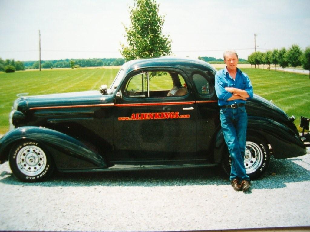 A photo of myself and 1936 Chevy coupe taken in 2001. Having grown up around old cars in Camden I am a devoted hotrodder, driving antiques most of my life, starting as a teen with a 1934 Ford street rod. |