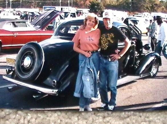 This is a more recent photo of Marilynne Seddon and yours truly, taken in 2000 at Atco Dragway. Behind us is my 1936 Chevy hotrod that won a goodly number of trophies at various shows. |
