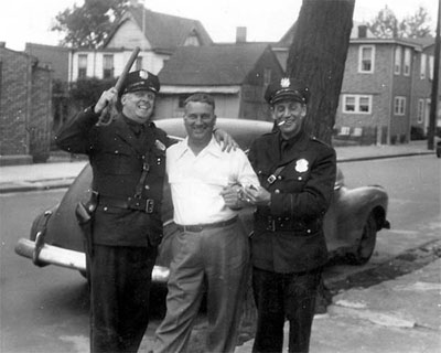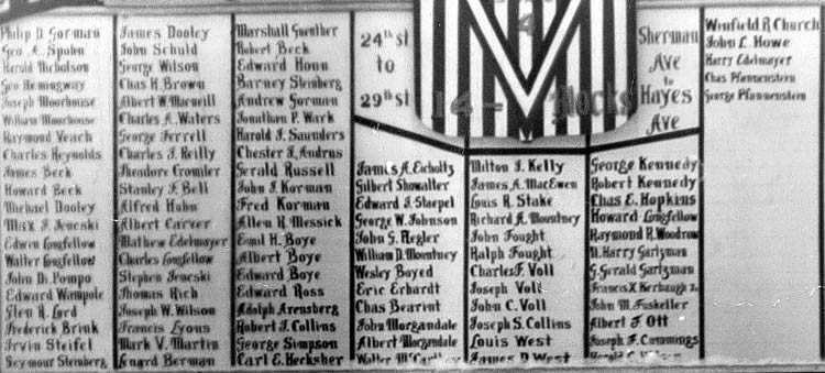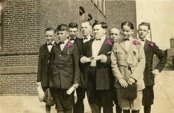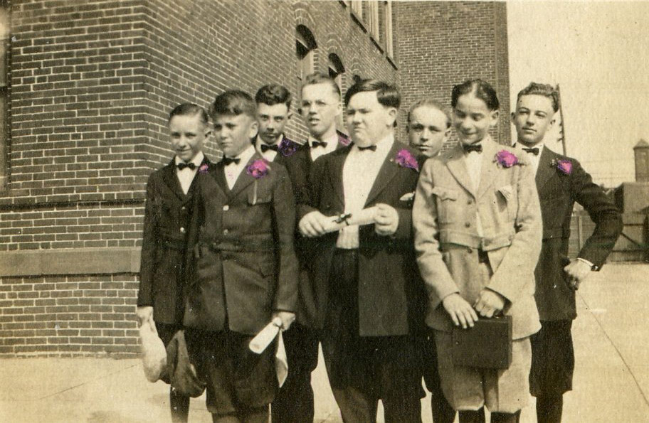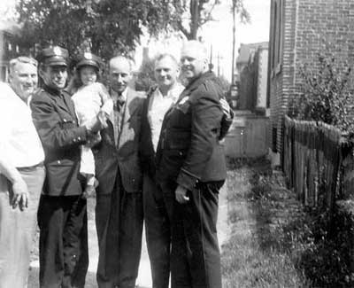 THIRD FROM LEFT - RAYMOND CURTIS. LOOK AT THAT OLIVER HARDY TWIN CENTER The hose tower at the rear belonged to the firehouse of North 27th Street. Photo Courtesy of Bruce Jay Smith |