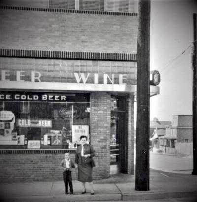 Click on Images to Enlarge Bernie Rieck: This wooden building is long gone. When I enlarged the photo I could just make out the "R" located above the white double doors in the front of the building. |
