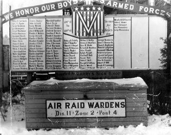 Hill's civilian Air Raid Wardens erected this sign listing the names