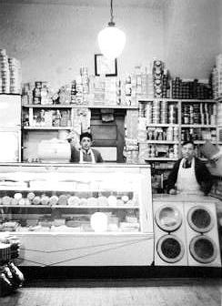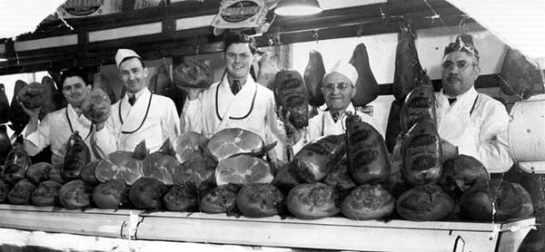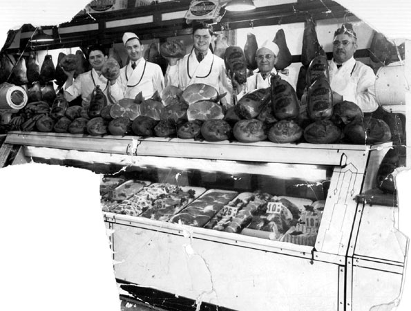 the Counter at D.A. Gottlieb & Sons Leon Gottlieb, unknown, Gerald Gottlieb, Nathan Lambersky, & John DeFelice |
