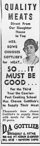 Since I grew up in Camden and worked with my dad at the family business on Mt Vernon St. from the time that I could hold a knife, about age 7 (1947), the site visit was particularly nostalgic. I will be happy to tell you more about the Gottliebs since the story is typical of the immigrant and particularly the Jewish immigrant family. I am the eldest child of four of Leon Gottlieb who assumed ownership of the Daniel A. Gottlieb and Sons, Inc., dba “Gottlieb Meats”. My mother, Blanche, brothers, Fred and Steve and sister Frances all, as might be expected, worked in the "business".