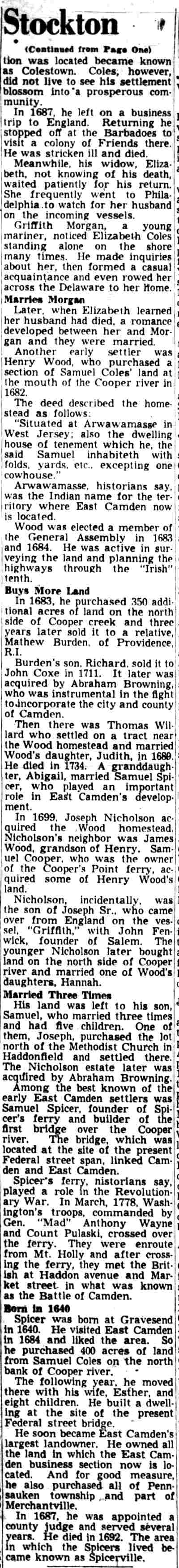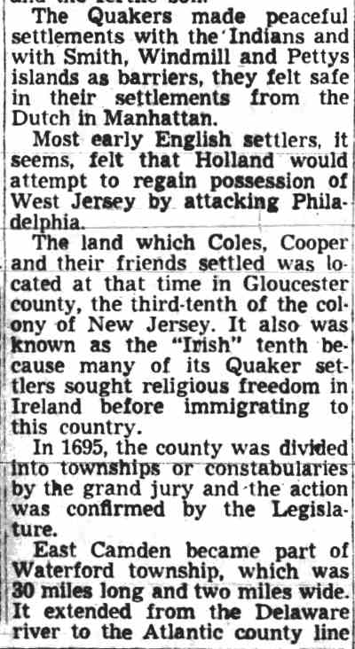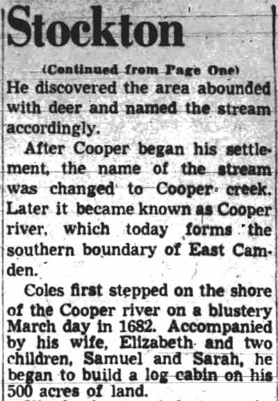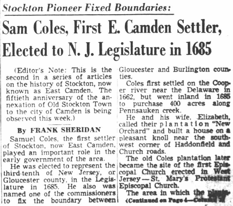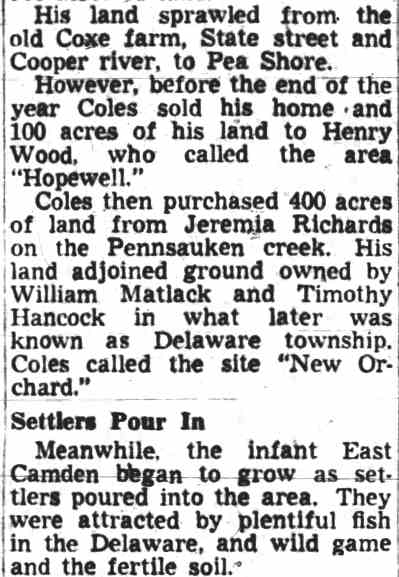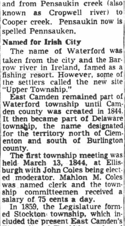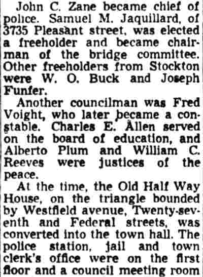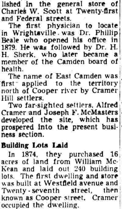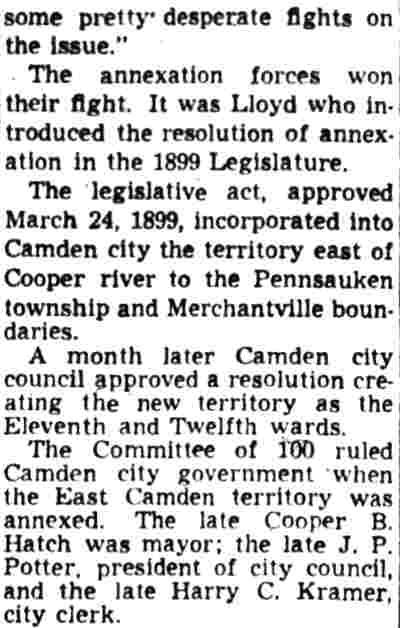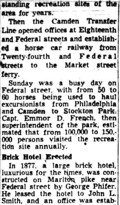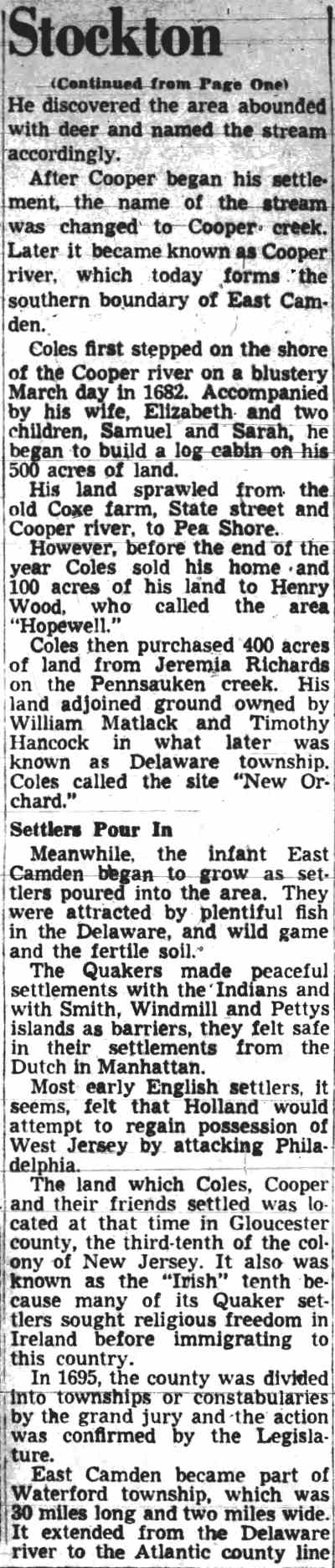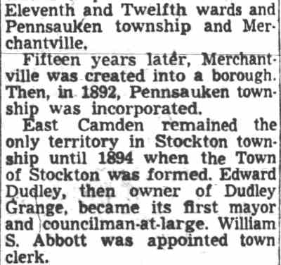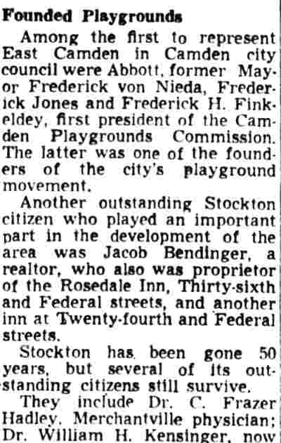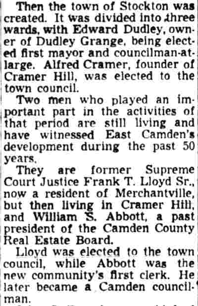 In May of 1949 veteran newspaperman Frank Sheridan of the Courier-Post wrote a five-part series in honor of the 50th anniversary of the annexation of the Town of Stockton by Camden, which brought all the land north and east of the Cooper River into the city… what we know today as East Camden and Cramer Hill. Phil