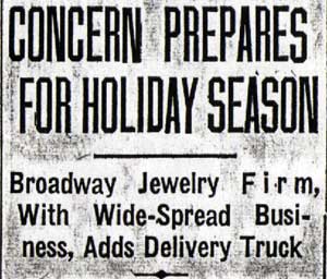 CLERK HELD IN ROBBERY OF STORE Climbing to the roof of a shed in the rear of the Greenetz & Pellicoff jewelry store, 833 Broadway, burglars entered the shop early today and carried away $2,000 in loot. At noon today, Joseph Shapiro, 29 years old, 215 South Fifth Street, a clerk in the store, was being grilled by Detectives George Ward and Thomas Cheeseman, after being booked at police headquarters as having been arrested “on suspicion.” August 29 four suspected robbers were captured by police only a few minutes after they had smashed the plate glass window and snatched a tray of jewels at the same store. Policeman John McTaggert reported the burglary this morning. He is the brother of Policeman James McTaggert, who participated in the capture of the four suspects last August. Included in the loot of the burglars this morning were 35 watches left at the shop by their owners for repairs. At the shop it was said the owners of the watches would be reimbursed. Other articles stolen included 26 bracelets, 12 diamond bar pins, 15 pair of earrings, three fountain pen sets, and six strings of beads. At 7:30 this morning, Patrolman McTaggert noticed several men standing in front of the jewelry store. He learned that they had just discovered an open window and, investigating, found the shop had been robbed. The watches and other articles of jewelry were taken from trays and showcases. A safe in the store was left untouched. The building next to the jewelry store at 831 Broadway is unoccupied and it was through this structure that the burglars entered. They climbed to the roof of a shed at the rear, entered a second story window and followed a corridor to an inner door of the jewelry store, forced open the door, and entered. The capture of the four men at the store more than four months ago resulted in commendation from Chief James E. Tatem for the three officers who participated. With Policeman Edward Smith and Frank Truax, Patrolman James McTaggert took the four men at revolver’s point. The men arrested at that time, still awaiting trial, are James Toner, 54 years old, 1204 Vine Street, Philadelphia; Mervin Campbell, 24 years old, 2309 Carlisle Street; James J. Kelly, 25 years old, 2121 Brandywine Street; and Frank MacCrossan, 33 years old, of 1328 Pearl Street. The proprietors of the store are Joseph and Michael Greenetz, 1468 Haddon Avenue, and Abraham Pellicoff, 1417 Haddon Avenue. |