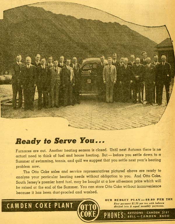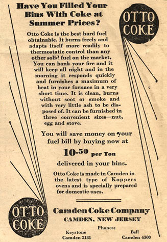 I don't don't know about Otto Coke, it sounds like a trade or type of process name for that coke. They still used cooking gas in Camden City till about 1957 or 1958. Then PSE&G sent guys around to change the orifices in all gas appliances so we could burn natural gas. Shortly afterwards Camden Coke closed at 2nd & Kaighn. Philadelphia until about the early 1970s had a coke plant on Richmond Street, and in real cold weather they would mix the cooking gas with natural gas so that they could make up any shortfall in pipeline. I think all coal dealers also sold coke too, I can't remember any that didn't.