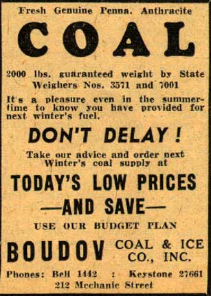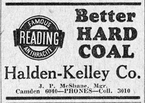 This page evolved from a page about the Boudov Coal & Ice Company, a business that was located at 212 Mechanic Street for many years. Three of the website's very good friends, John Ciafrani, Jim Bessing, and earl crim, were nice enough write about what it was like to heat their homes with coal, a fuel that has become rarely used in Camden and suburban South Jersey. Prior to the advent of oil heat, and later the appearance of natural gas, coal was for many years the fuel of choice for heating homes, businesses, and other large buildings.