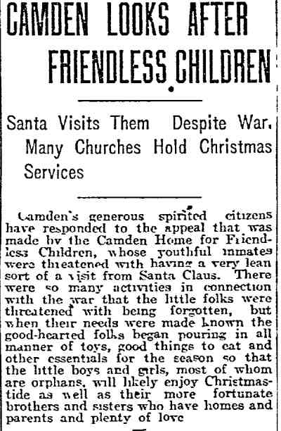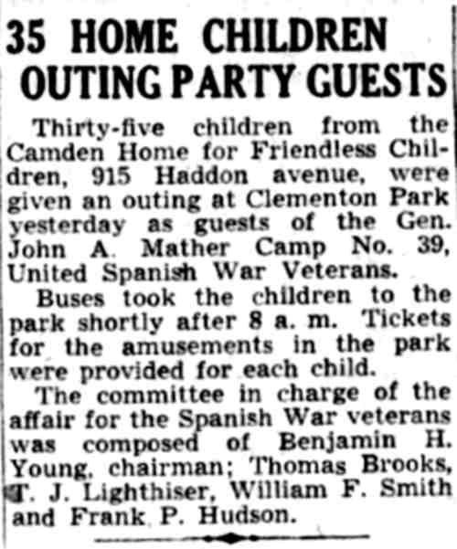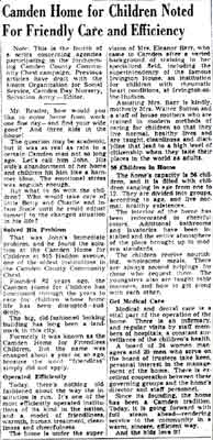 The Camden Home for Friendless Children was established in 1865. By the 1890s the institution had located at 915 Haddon Avenue in Camden NJ. Mrs. Lucretia Read, the widow of Camden realtor William T. Read Sr., and mother of New Jersey State Senator William T. Read Jr., was very active in the affairs of the Home. She served on the Board of Managers, and eventually was elected President of that body. She was President Emeritus of the Board of Managers when she died in October 1936 at the age of 83. Shortly after World War II, in 1946, the name of the building was changed to the Camden Home for Children. The home, with its capacity of 56 children, eventually closed, due to age and growing needs. After being renamed the Camden Home for Children, the foundation operated in the 1960s and 1970s at Kaighn Avenue and Vesper Boulevard, a facility now used by the Camden Board of Education. When the Camden Home for Friendless Children at 915 Haddon Avenue closed sometime in the 1960s, the building was razed, and the Camden branch of the Salvation Army built a new building which they presently occupy, at the Haddon Avenue address. The old building is gone, but 915 Haddon avenue is still an address that takes care of Camden's underprivileged children, as the Salvation Army has remained there. For a number of years, the Camden Home for Children organization maintained offices in Westmont, New Jersey. Although as of 2011 there is no longer any office or facility, the organization continues to serve children in need in a behind the scenes capacity, supporting sister agencies in their missions. The Camden Home for Friendless Children was renamed Camden Home for Children & S.P.C.C. after merger with the Society for the Prevention of Cruelty to Children. Longtime Executive Director John Powell passed away on August 20, 2010. He was succeeded in this position by Alan L. Stedman. The Camden Home for Children Board accepts donations and bequests to augment its work which is to support various Southern New Jersey agencies working with youth, especially those in residential group settings, with grants for targeted capital projects that are otherwise unfunded by other private or government sources. Information on past residents of the Camden Home for Children is confidential and subject to new privacy laws adopted by the State of New Jersey and will only be further accessed after adoption by the Camden Home Board of Trustees of a new Privacy Policy, scheduled for September 2011. A fee will likely apply, and an application and documentation of relationship will be required. The Camden Home for Children and S.P.C.C. may be reached by postal mail and e-mail at the addresses below: The Camden Home For Children &