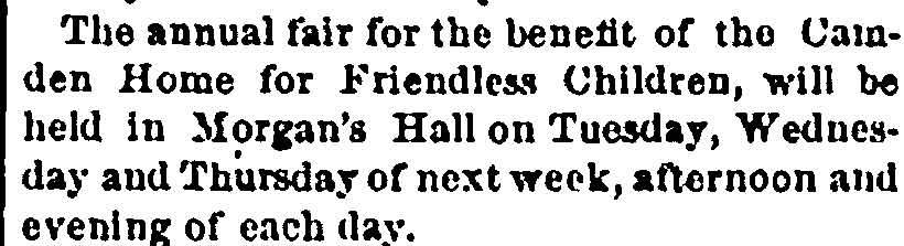 were renovated and filled with children in need. On December 9th of 1873, the Camden