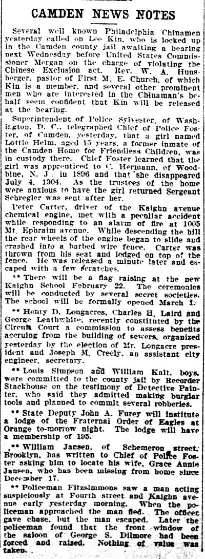 Inquirer - February 12, 1905 Click on Image for Complete Article |