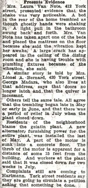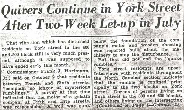 “The side walls undoubtedly were caused to collapse by vibrations set up by several heavy trucks which were using the street at the time,” Dr, Downey aid.
