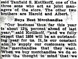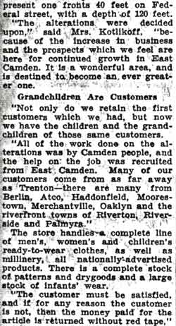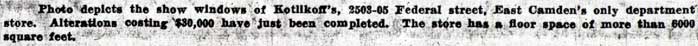 Floor Space of East Camden Store Doubled to Meet Increased Business Show Windows of Kotlikoff's Department Store |