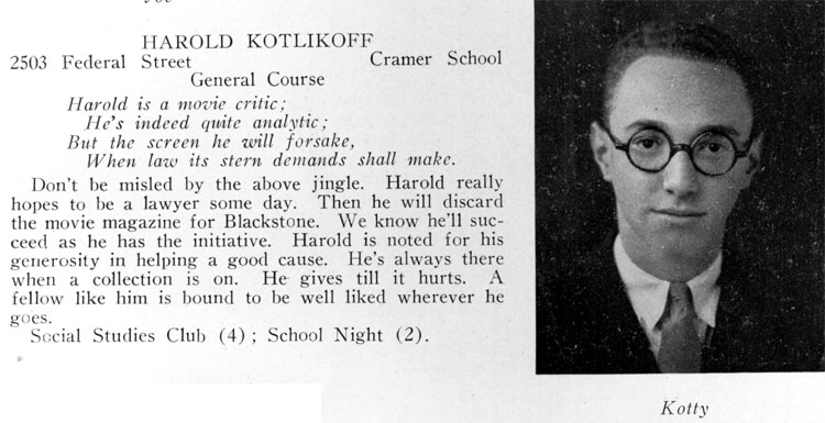 I had my first job at Kotlikoff's, at 25th and Federal. They hired me as a part time stock boy, after school. But not until I got my "working papers" (do kids today need working papers?). Harry