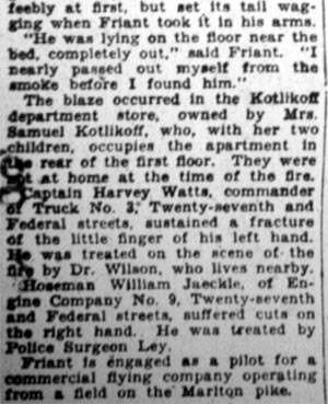 Store AVIATOR RISKS LIFE TO SAVE PET DOG; JANITOR ARRESTED Blame Man's 'Celebration for Overheating of Furnace That Started Blaze |