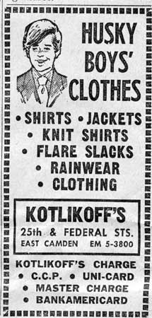 While growing up in Camden I was an altar boy at the convent next to the hospital on Euclid Ave and my mother always took me to Kotlikoffs for my suits. Pat