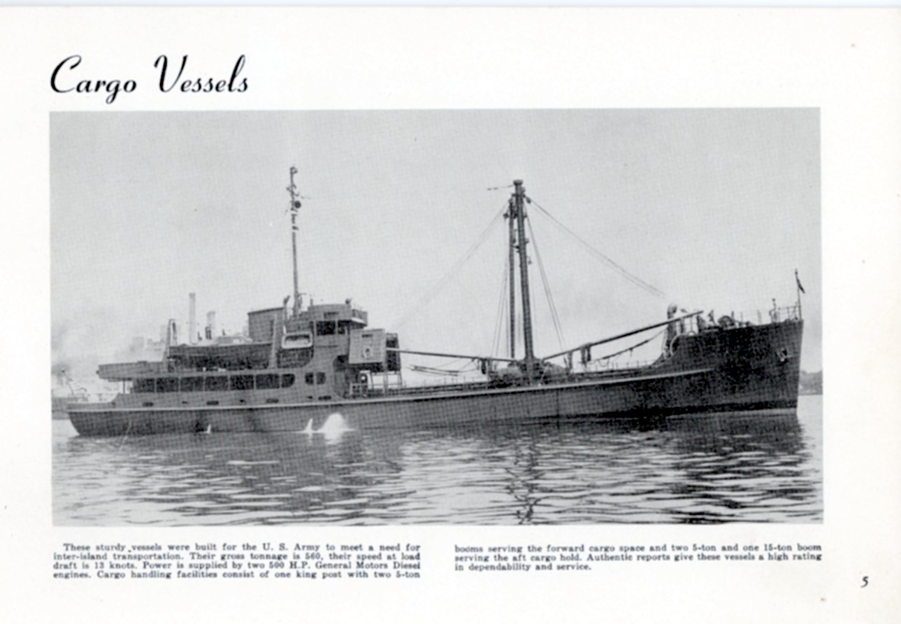 The famous movie Mister Roberts revolved around life on a FS vessel. FS-311 The Coast Guard-manned Army vessel FS-311 was commissioned on 13 June 1944 at Mathis Shipyard, Camden, NJ with LTJG Kenneth P. Howard, USCGR, as commanding officer. On 17 July 1944, she departed New York for the Southwest Pacific where she operated during the war. FS-314 The Coast Guard-manned Army vessel FS-314 was commissioned at Mathis Shipyard in Camden, New Jersey on 22 July 1944 with LTJG W. I. Mittendorf, USCGR, as commanding officer. On 4 September 1944 she departed New York. She was assigned to and operated in the Southwest Pacific during the war at Leyte end elsewhere. FS-317 The Coast Guard-manned Army vessel FS-317 was commissioned 25 September 1944 at Mathis Shipyard, Camden, NJ with LT C.B. Christiansson as her first commanding officer. He was succeeded by LTJG T.B. Barron, USCGR, who in turn was succeeded on 14 November 1945 by LTJG J.V. Harrison, USCG. She departed New York on 22 October 1944 for the Southwest Pacific area where she operated during the war. |