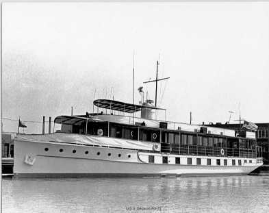 Sequoia AG-23 The USS Sequoia was classified as an "Auxiliary--Miscellaneous" vessel with 100 tons displacement; length on water line, 99 feet, extreme beam at water line, 18 feet 2 inches. The Mathis Yacht Shipbuilding Company, Camden, New Jersey built her, in 1925. This vessel was taken over by the Navy from the Department of Commerce on March 25, 1933 and placed in commission on that date at Annapolis, Maryland. She was assigned to the Washington Navy Yard where she was fitted out as the Presidential Yacht. President Roosevelt made cruises in her during the period 1933-1935. President Hoover spent his last Christmas in office aboard the Sequoia. |
