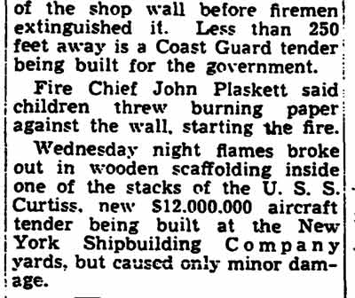 Shipyard U.S.S. Curtiss - New York Shipbuilding Corporation - Camden Shipyards Click on Images to Enlarge |