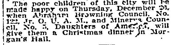 Browning Council No. 122, Order of United American Mechanics Minerva Counci No. 5, Daughters of America - Morgan's Hall |