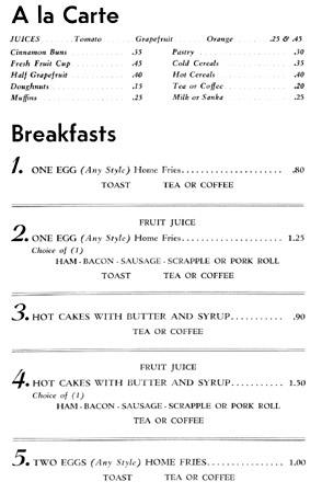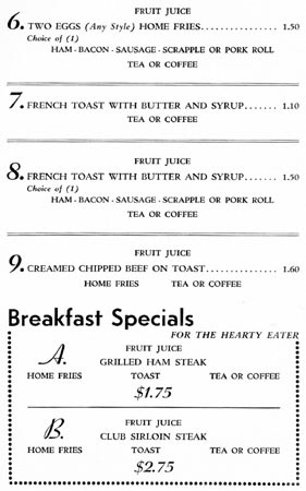 PLAZA HOTEL -BREAKFAST MENU from about 1964 CLICK ON PHOTO FOR ENLARGED VIEW |