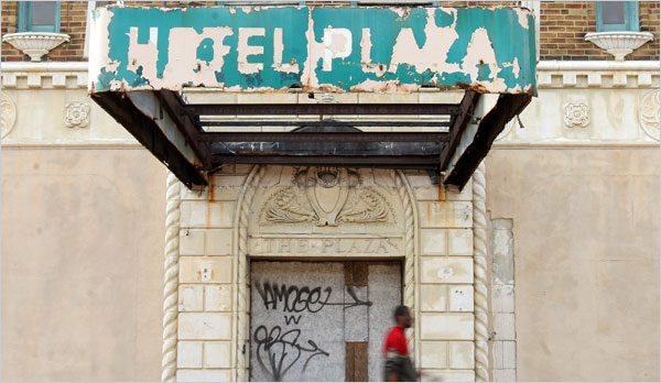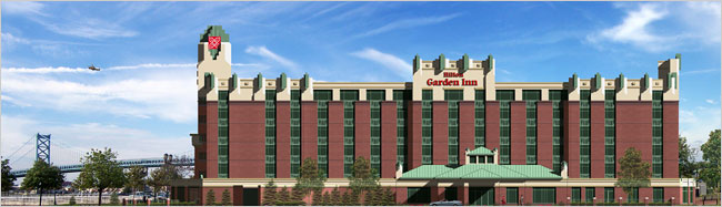 In a Faded City, Plans to Build a Hotel Build Hope By KAREEM FAHIM CAMDEN, N.J. — The old Plaza Hotel downtown is a tomb, sealed shut for more than 20 years now, its windows shattered and its green marquee worn and stripped of letters. Trapped inside the hotel are the memories of a once-thriving industrial town, where business people and job seekers and even the occasional entertainer came to visit and dine. Since it closed in 1985, the hotel, battered by the city’s decline, seemed to deliver a warning: Camden was not a place to linger after dark, not a place one stayed. But a group of developers is seeking the planning board’s approval this week for a 140-room Hilton Garden Inn on Camden’s waterfront, what would be the first new hotel built here in about 70 years.