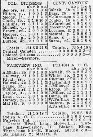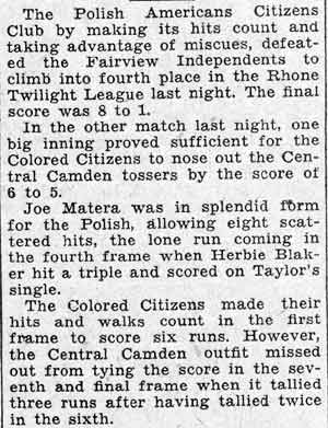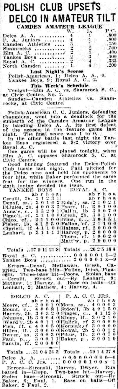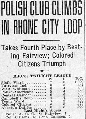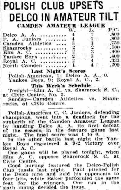 ![]() "Pusey", the firstbaseman for the P.A.C.C., was Camden police officer Leon Puszcykowski |