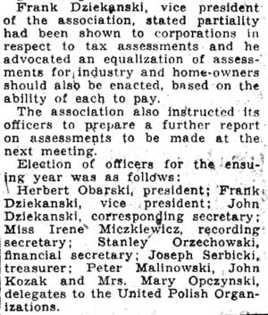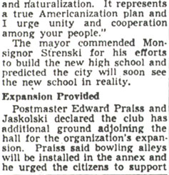 POLISH CITIZENS CLUB TO CHANGE NAME Steps were taken to change the name of the Polish Citizens Club to the Polish American Citizens Club at the installation of the newly elected officers of the organization in the clubhouse, 1559 Mt. Ephraim Avenue, last night. The following officers were installed: Stanley Ciechanowski, president; F. Multanski, vice president; J. Witik, financial secretary; J. Mroz, recording secretary; Edward Praiss, corresponding secretary, and F. Benclawski, treasurer. The installation was conducted by J. Zbieratzki, honorary president. President Ciechanowski, in his address to the members, spoke of the necessity of enlarging the club’s headquarters, and of plans for a membership drive. He also spoke of having a large number of Polish citizens represented in the next naturalization class here. |