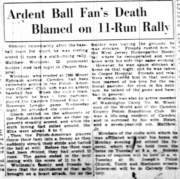 Wielinski Mount Ephraim Avenue Polish American Citizens Club Camden Colored Elks Clay W. Reesman League West Jersey Hospital Cooper Hospital Woodmen of the World St Joseph's Church South 10th Street Mechanic Street Camden Polish Republican Club |