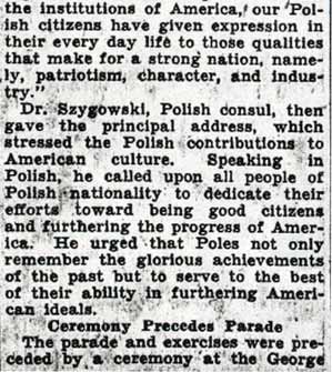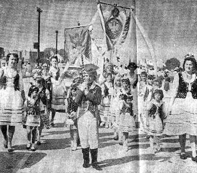 DRESSED as General Pulaski, John Wrobel carries standard at head of St. Helena's Group 190, Polish Beneficial Association. Children are carefully arranged according to size to best display their costumes. |