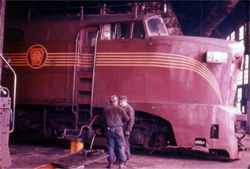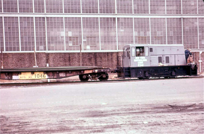 diesel switcher with crew, resting at New York Ship.