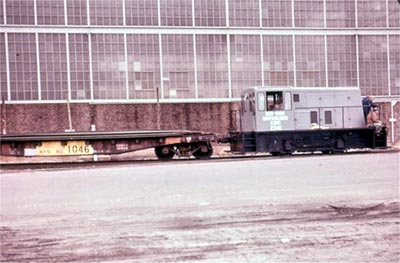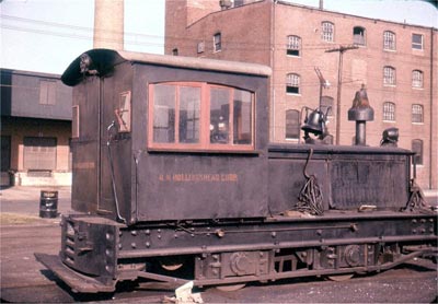a little switcher belonging to the R.M. Hollingshead factory in the rear.