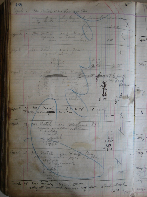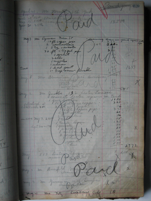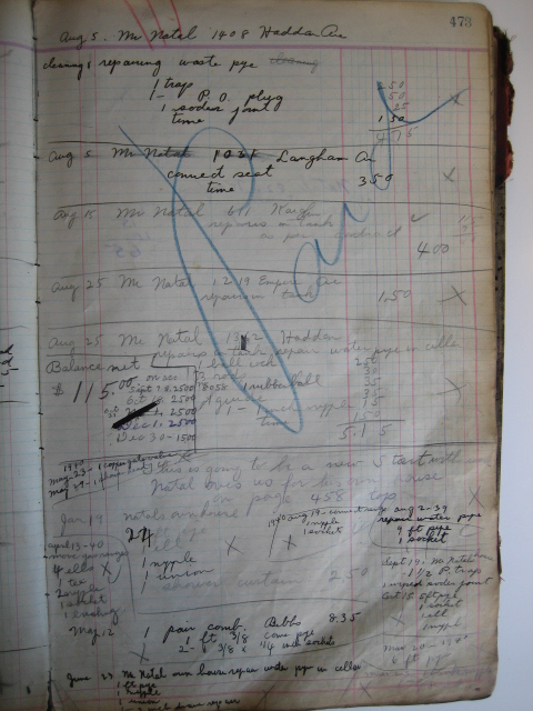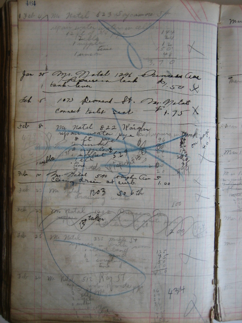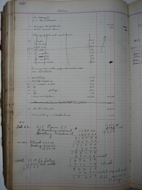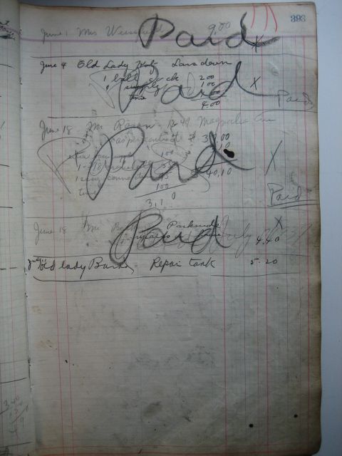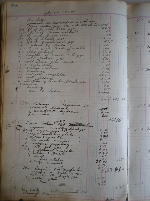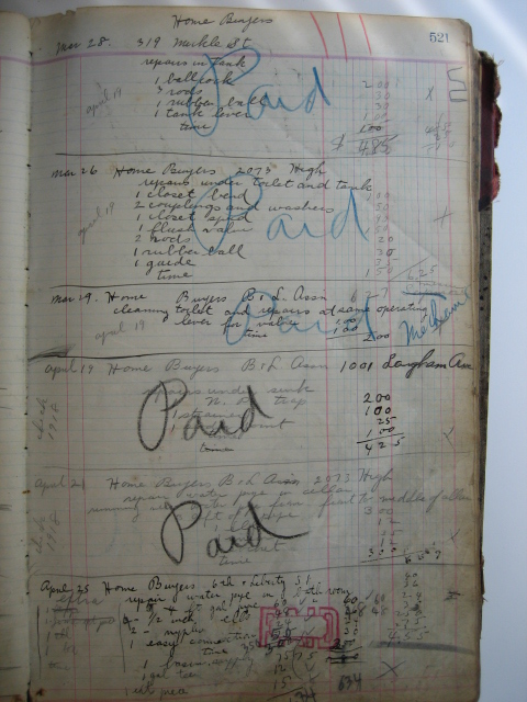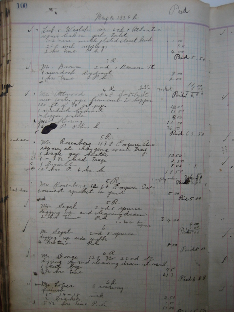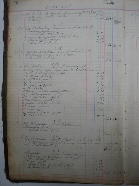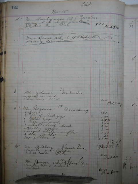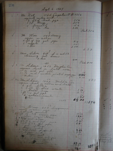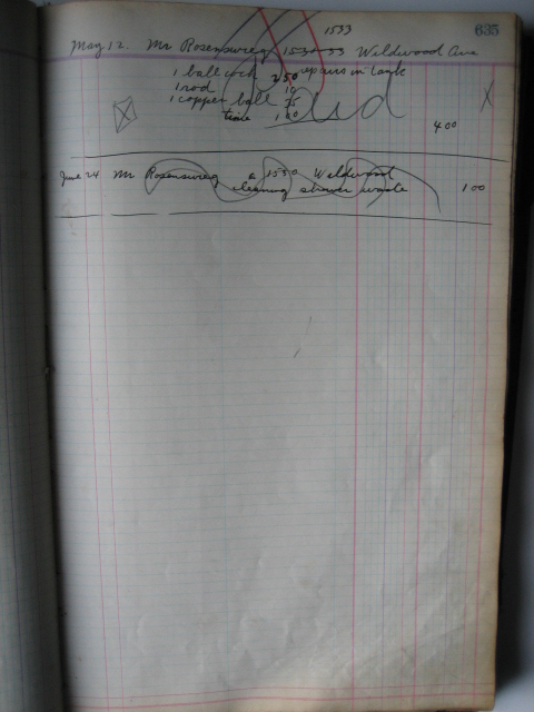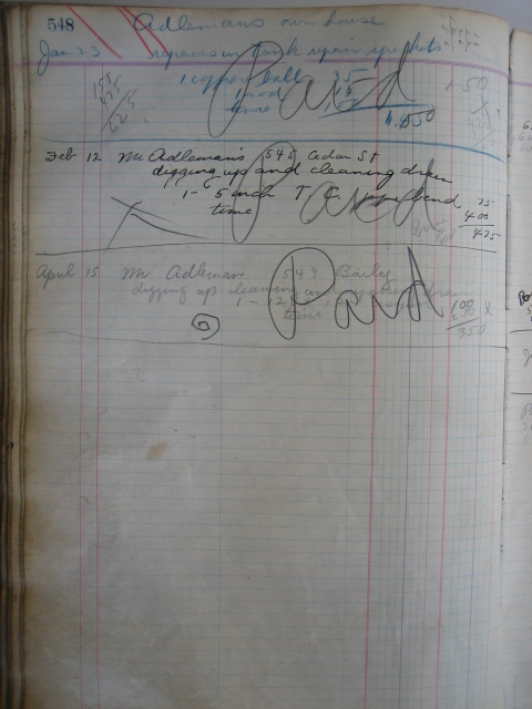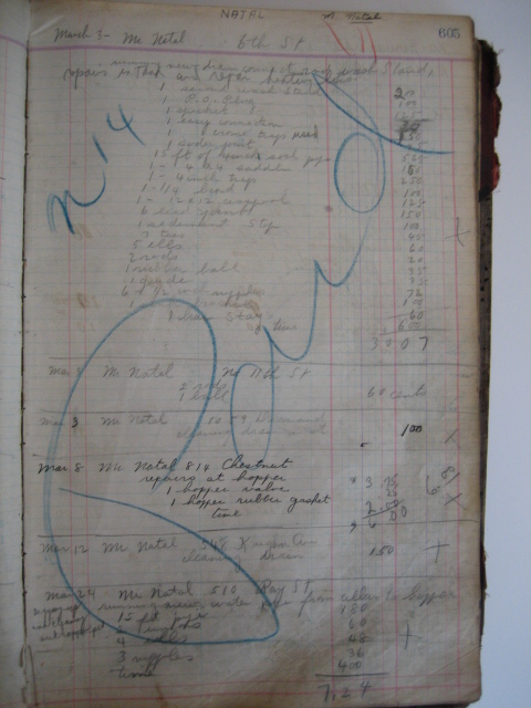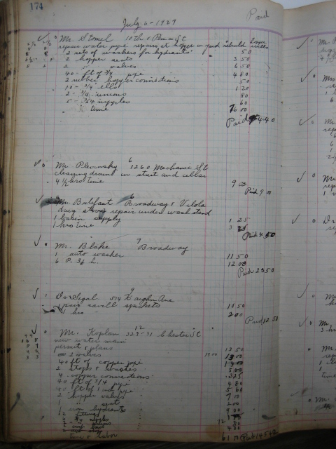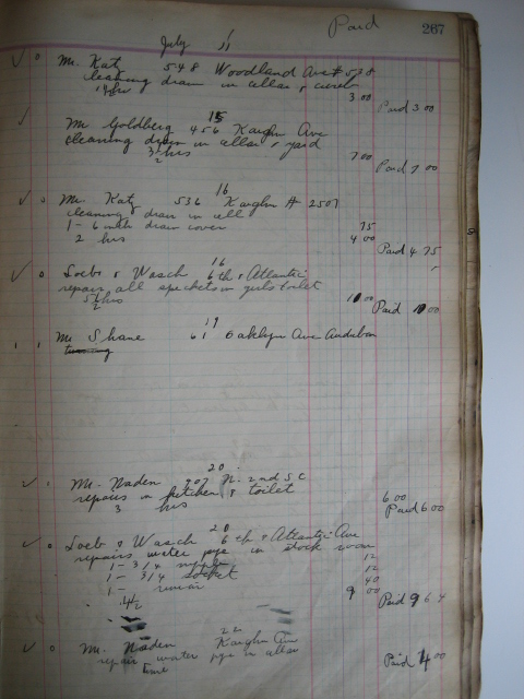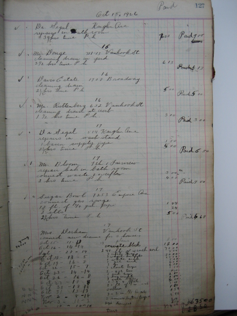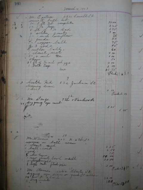 Ross Plumbing was the business of the Ross family, and bore the name of its founder, Isreal Ross, who went into business as a plumbing and heating contractor in 1918. He had previously partnered with Francis Bicker Jr., son of Dr. Francis Bicker, a well known physician in Camden's Eighth Ward. He may still have been in business with Bicker into the 1920s. By January of 1920 Isreal Ross and his wife, the former Annie Silverman, had bought a house at 1145 Baring Street. Annie Silverman was the daughter of Becky Silverman, who owned an operated a clothing business at 299 Kaighn Avenue, the corner of South 3rd Street and Kaighn Avenue. A set of journals that begin in 1924 seem to indicate that the partnership with Francis Bicker Jr. had dissolved, and that Isreal Ross had started his own business. These journals, presented here, show every job that Isreal Ross undertook, indicate that he worked for many people who were or would become well known in Camden. He also had begun doing work for various real estate operators. Sometime after the fall of 1936 Israel Ross acquired the building at 1142 South 6th Street, where the Tarter family had once conducted a bottling business. Isreal Ross lived and operated his business here, the Ross Plumbing & Heating Company, through at least 1947. By that time sons Edward and Leonard had joined the business. Ross Plumbing and Heating did a great portion of its business with Camden real estate operators and landlords. Some of the larger and more notable clients in the 1930s and 1940s included Benjamin Natal, Theodore Tiedeken, Samuel Gelfand, Louis Richelson, Louis Dorflinger, Ellis Goodman, Zellie Ellis, Joseph and William Lipkin, and Alex Malamut. There was also institutional work, for the Talmud Torah building, churches and synagogues, and Belleview Hospital. They also did work for several Camden physicians, including Dr. Ulysses Wiggins, Dr. William Lashman, and Dr. Marcus Wheatland. Commercial accounts included Trilling & Montague, a company involved with many of the bar businesses in Camden, Quality Drugs, and several businesses on Broadway, Kaighn Avenue, and throughout the city. They also worked for several Building and Loan Associations and the Federal Deposit Insurance Corporation's real estate operation. Isreal Ross passed away on April 12, 1962. He was buried the following day at Crescent Burial Park in Pennsauken NJ. He was survived by his wife and sons, who carried the business forward. Anna Silverman Ross passed away in Cherry Hill NJ in 1993. The Ross Plumbing and Heating Company was still operating on South 6th Street as late as the fall of 1977, and owned the property into the late 1990s. For more about the the family and business of Isreal and Anna Ross, please visit the following web-pages on on this site: