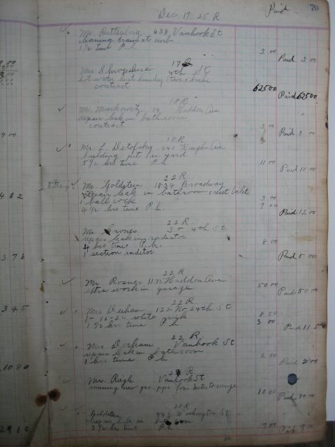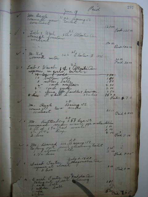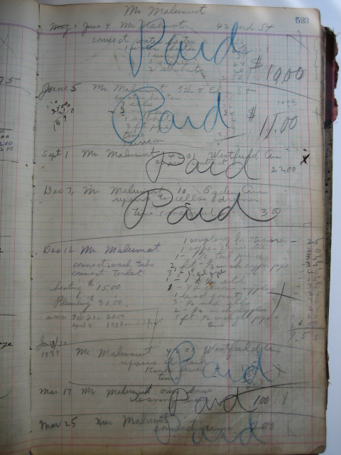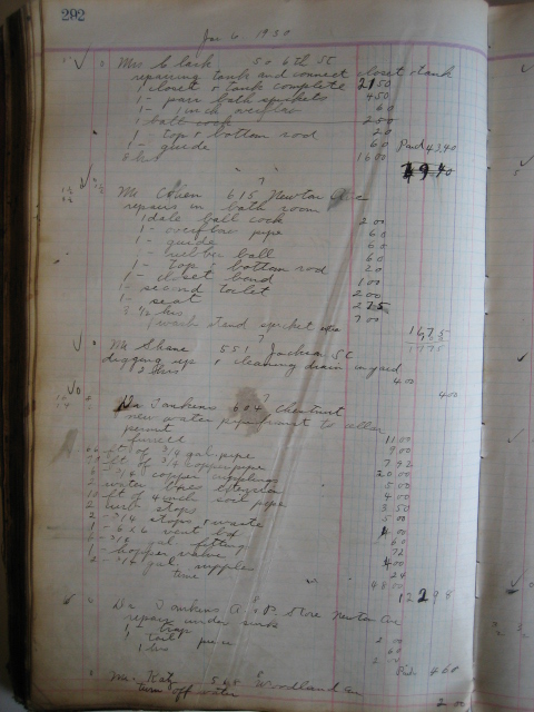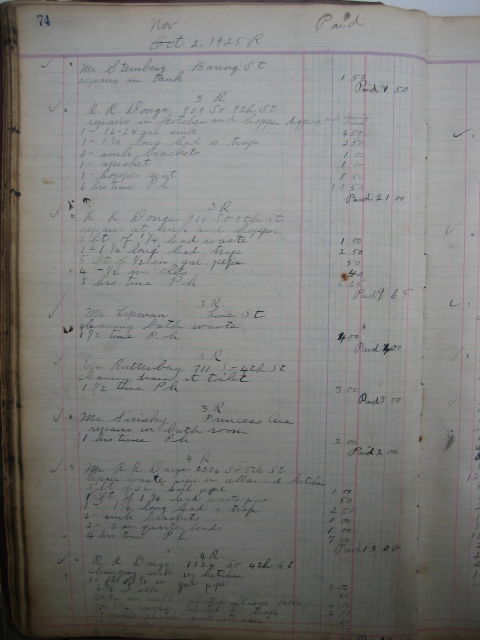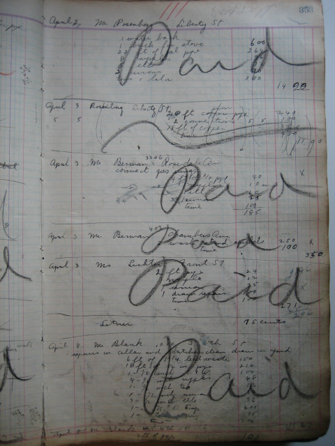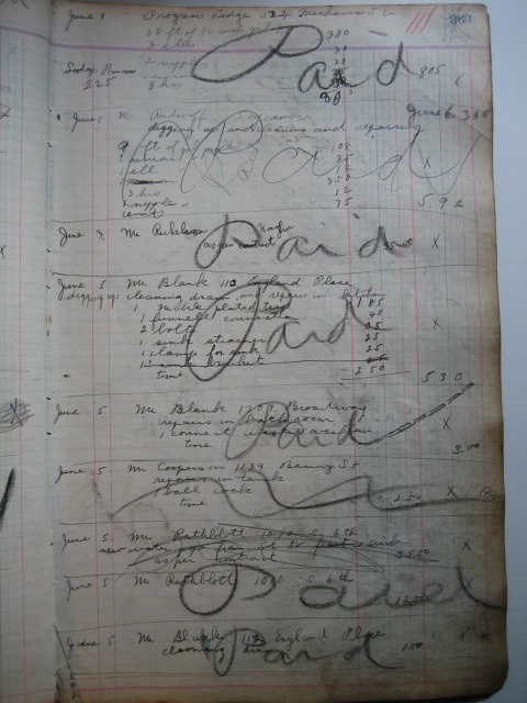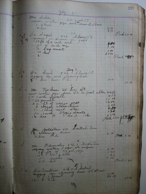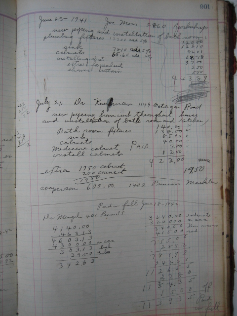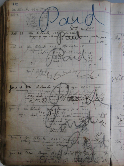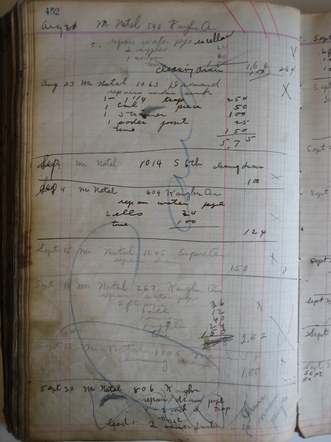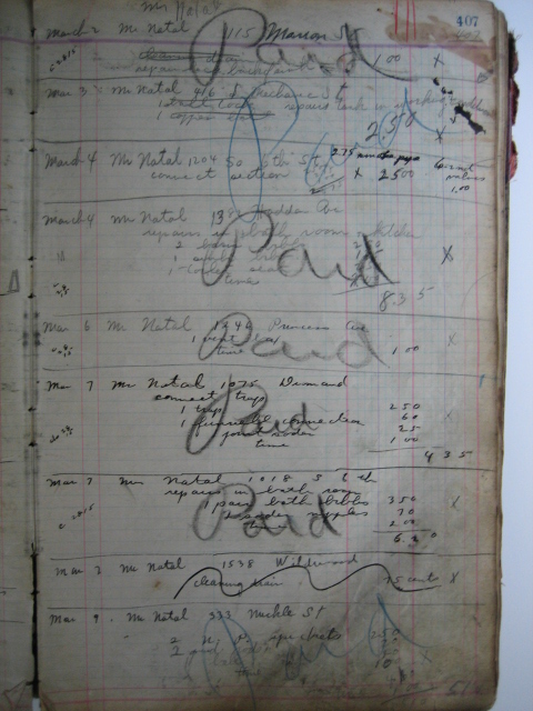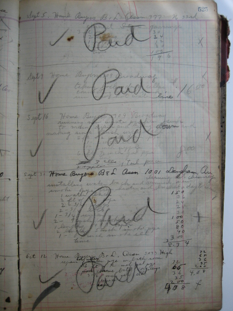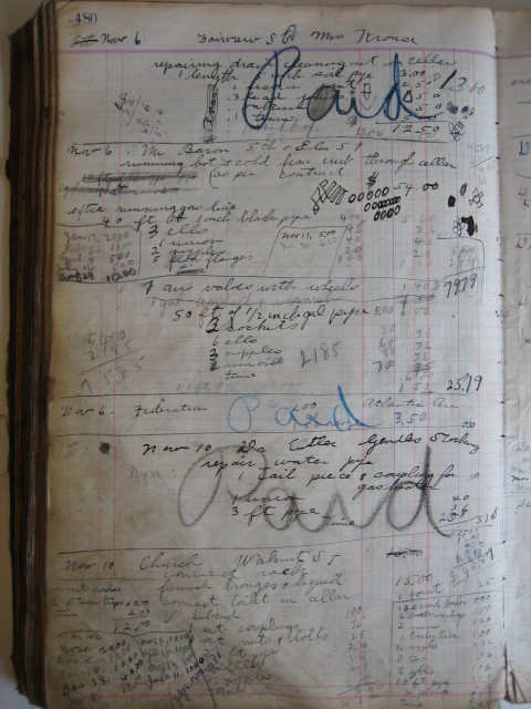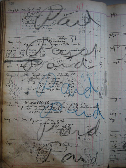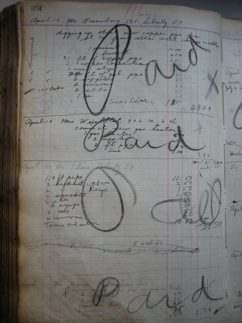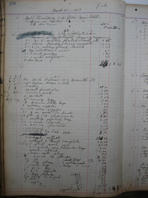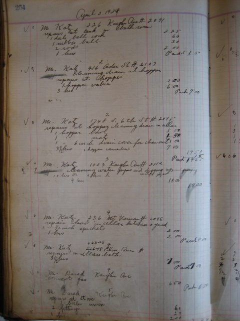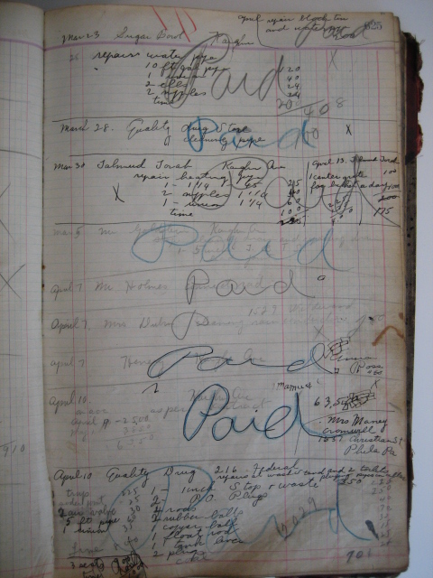 Ross Plumbing was the business of the Ross family, and bore the name of its founder, Isreal Ross, who went into business as a plumbing and heating contractor in 1918. He had previously partnered with Francis Bicker Jr., son of Dr. Francis Bicker, a well known physician in Camden's Eighth Ward. He may still have been in business with Bicker into the 1920s. By January of 1920 Isreal Ross and his wife, the former Annie Silverman, had bought a house at 1145 Baring Street. Annie Silverman was the daughter of Becky Silverman, who owned an operated a clothing business at 299 Kaighn Avenue, the corner of South 3rd Street and Kaighn Avenue. A set of journals that begin in 1924 seem to indicate that the partnership with Francis Bicker Jr. had dissolved, and that Isreal Ross had started his own business. These journals, presented here, show every job that Isreal Ross undertook, indicate that he worked for many people who were or would become well known in Camden. He also had begun doing work for various real estate operators. Sometime after the fall of 1936 Israel Ross acquired the building at 1142 South 6th Street, where the Tarter family had once conducted a bottling business. Isreal Ross lived and operated his business here, the Ross Plumbing & Heating Company, through at least 1947. By that time sons Edward and Leonard had joined the business. Ross Plumbing and Heating did a great portion of its business with Camden real estate operators and landlords. Some of the larger and more notable clients in the 1930s and 1940s included Benjamin Natal, Theodore Tiedeken, Samuel Gelfand, Louis Richelson, Louis Dorflinger, Ellis Goodman, Zellie Ellis, Joseph and William Lipkin, and Alex Malamut. There was also institutional work, for the Talmud Torah building, churches and synagogues, and Belleview Hospital. They also did work for several Camden physicians, including Dr. Ulysses Wiggins, Dr. William Lashman, and Dr. Marcus Wheatland. Commercial accounts included Trilling & Montague, a company involved with many of the bar businesses in Camden, Quality Drugs, and several businesses on Broadway, Kaighn Avenue, and throughout the city. They also worked for several Building and Loan Associations and the Federal Deposit Insurance Corporation's real estate operation. Isreal Ross passed away on April 12, 1962. He was buried the following day at Crescent Burial Park in Pennsauken NJ. He was survived by his wife and sons, who carried the business forward. Anna Silverman Ross passed away in Cherry Hill NJ in 1993. The Ross Plumbing and Heating Company was still operating on South 6th Street as late as the fall of 1977, and owned the property into the late 1990s. For more about the the family and business of Isreal and Anna Ross, please visit the following web-pages on on this site: