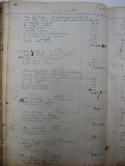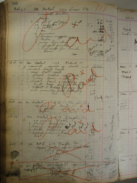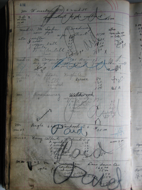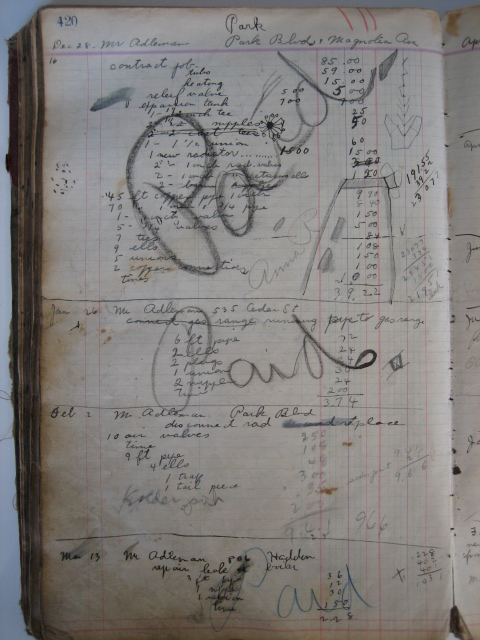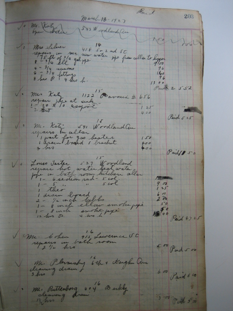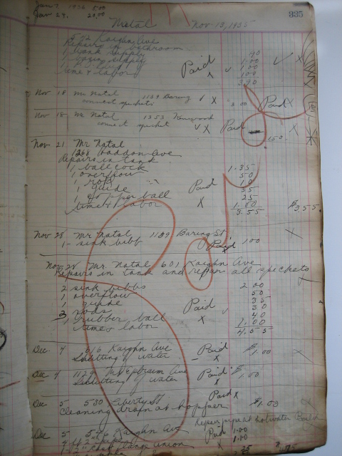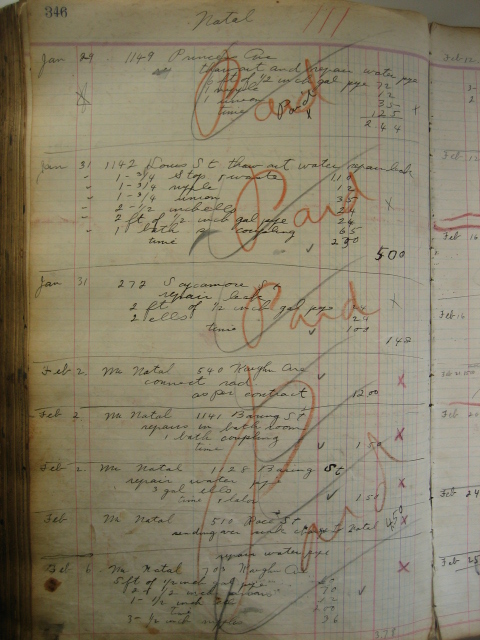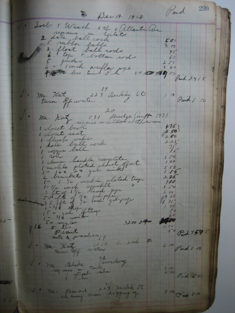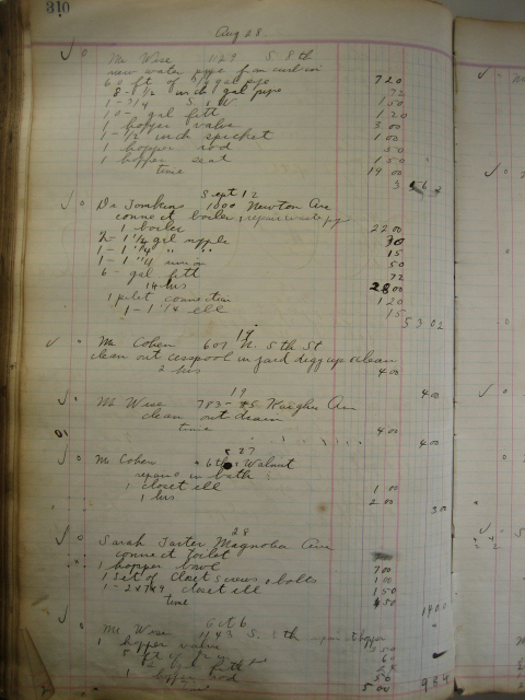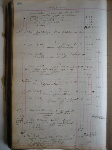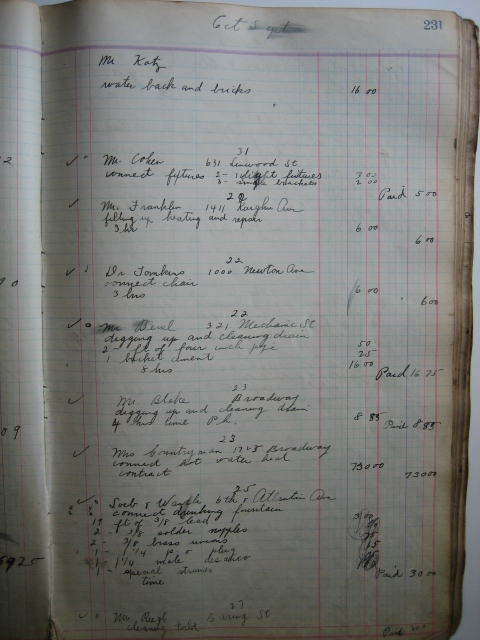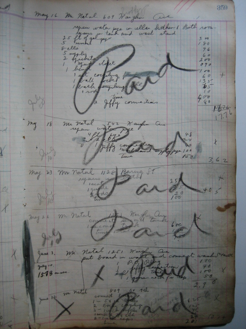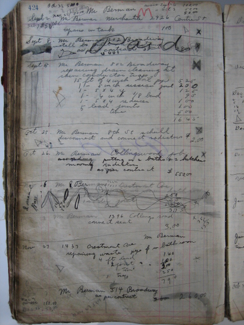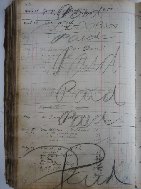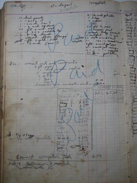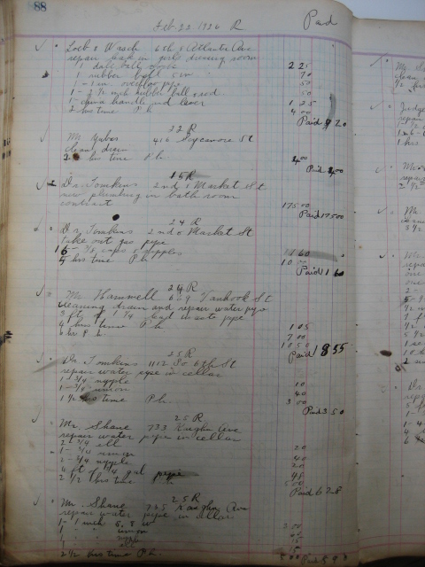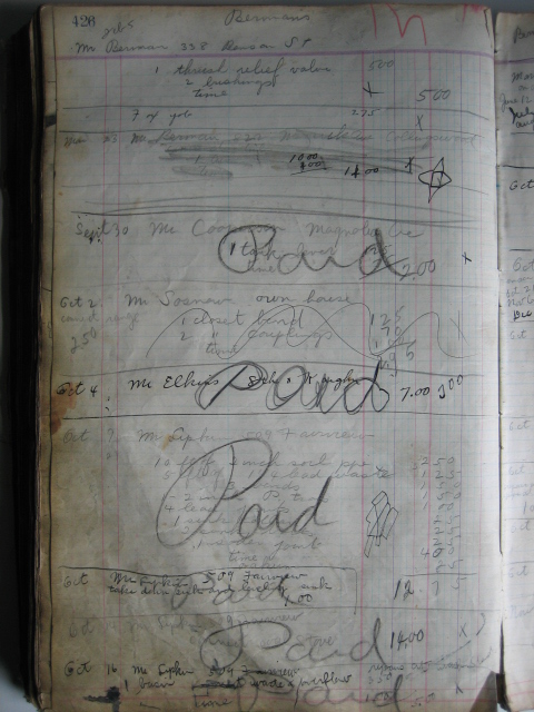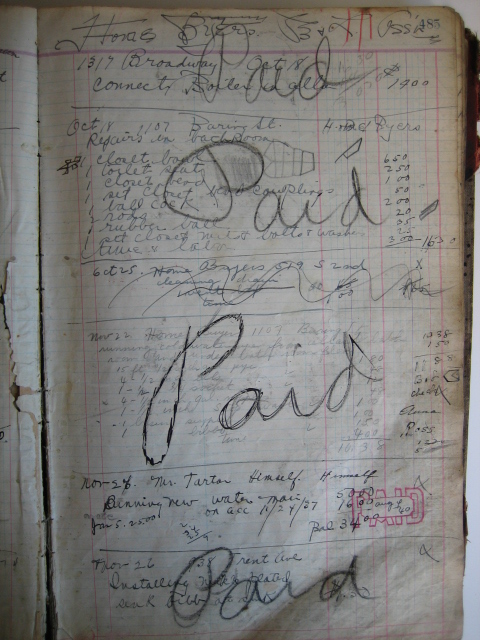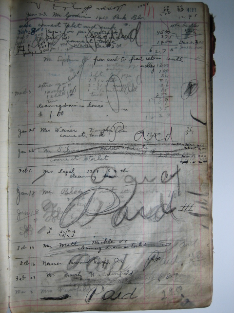 Ross Plumbing was the business of the Ross family, and bore the name of its founder, Isreal Ross, who went into business as a plumbing and heating contractor in 1918. He had previously partnered with Francis Bicker Jr., son of Dr. Francis Bicker, a well known physician in Camden's Eighth Ward. He may still have been in business with Bicker into the 1920s. By January of 1920 Isreal Ross and his wife, the former Annie Silverman, had bought a house at 1145 Baring Street. Annie Silverman was the daughter of Becky Silverman, who owned an operated a clothing business at 299 Kaighn Avenue, the corner of South 3rd Street and Kaighn Avenue. A set of journals that begin in 1924 seem to indicate that the partnership with Francis Bicker Jr. had dissolved, and that Isreal Ross had started his own business. These journals, presented here, show every job that Isreal Ross undertook, indicate that he worked for many people who were or would become well known in Camden. He also had begun doing work for various real estate operators. Sometime after the fall of 1936 Israel Ross acquired the building at 1142 South 6th Street, where the Tarter family had once conducted a bottling business. Isreal Ross lived and operated his business here, the Ross Plumbing & Heating Company, through at least 1947. By that time sons Edward and Leonard had joined the business. Ross Plumbing and Heating did a great portion of its business with Camden real estate operators and landlords. Some of the larger and more notable clients in the 1930s and 1940s included Benjamin Natal, Theodore Tiedeken, Samuel Gelfand, Louis Richelson, Louis Dorflinger, Ellis Goodman, Zellie Ellis, Joseph and William Lipkin, and Alex Malamut. There was also institutional work, for the Talmud Torah building, churches and synagogues, and Belleview Hospital. They also did work for several Camden physicians, including Dr. Ulysses Wiggins, Dr. William Lashman, and Dr. Marcus Wheatland. Commercial accounts included Trilling & Montague, a company involved with many of the bar businesses in Camden, Quality Drugs, and several businesses on Broadway, Kaighn Avenue, and throughout the city. They also worked for several Building and Loan Associations and the Federal Deposit Insurance Corporation's real estate operation. Isreal Ross passed away on April 12, 1962. He was buried the following day at Crescent Burial Park in Pennsauken NJ. He was survived by his wife and sons, who carried the business forward. Anna Silverman Ross passed away in Cherry Hill NJ in 1993. The Ross Plumbing and Heating Company was still operating on South 6th Street as late as the fall of 1977, and owned the property into the late 1990s. For more about the the family and business of Isreal and Anna Ross, please visit the following web-pages on on this site: