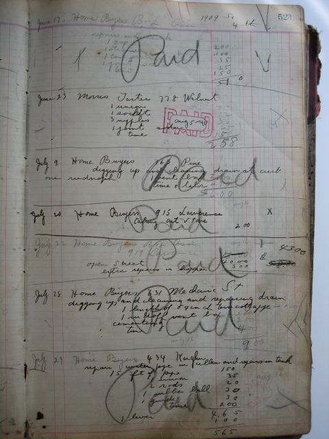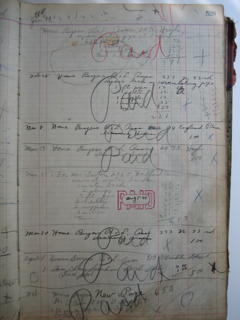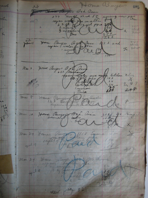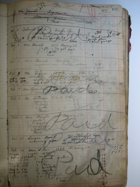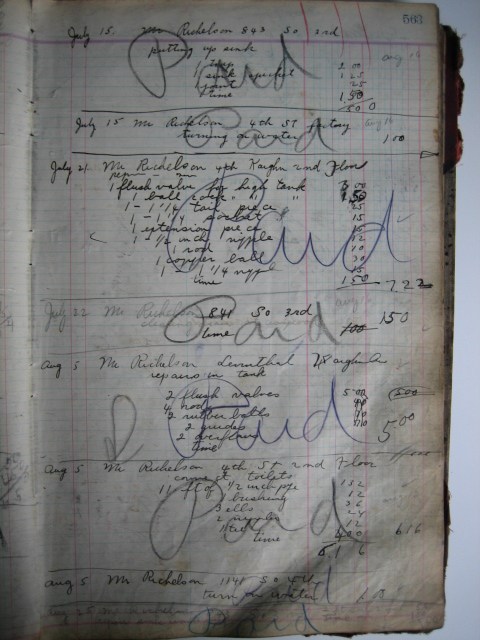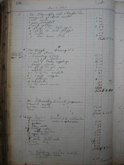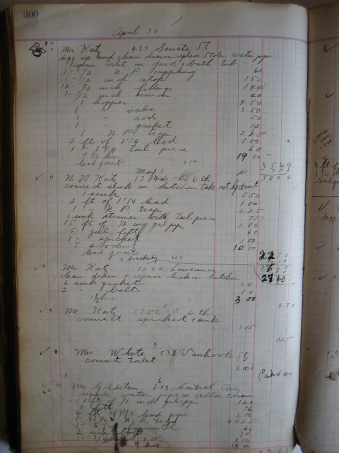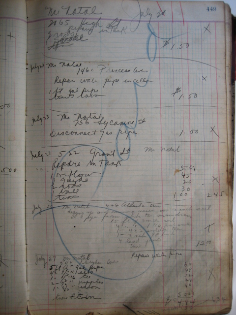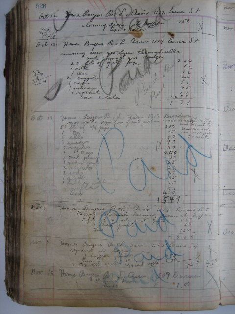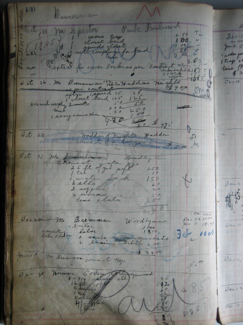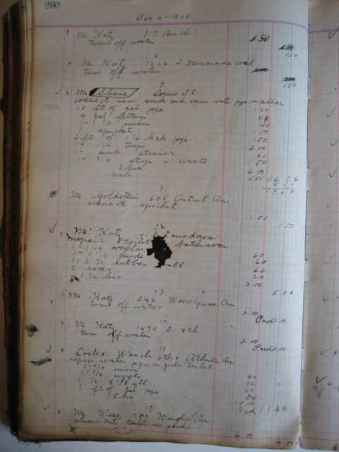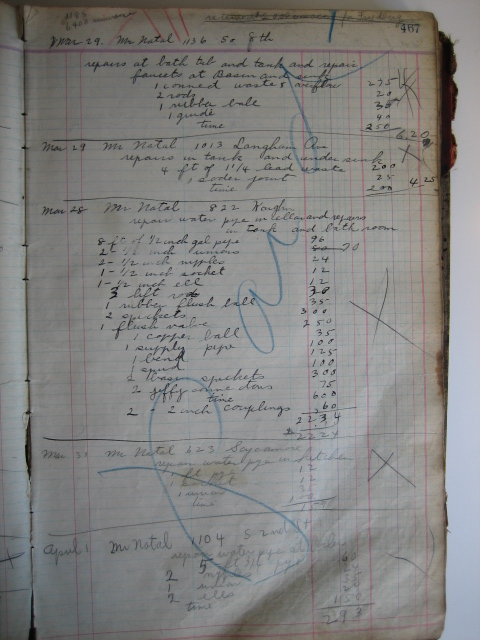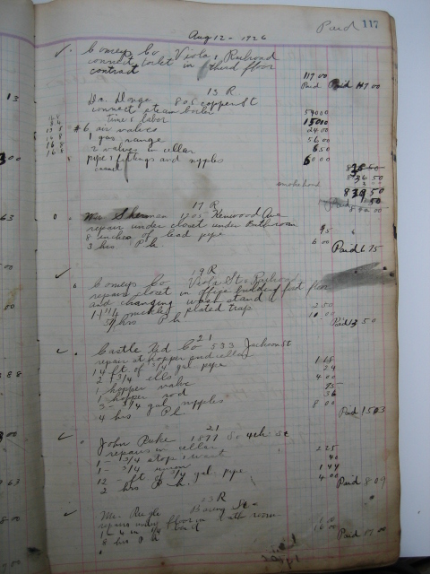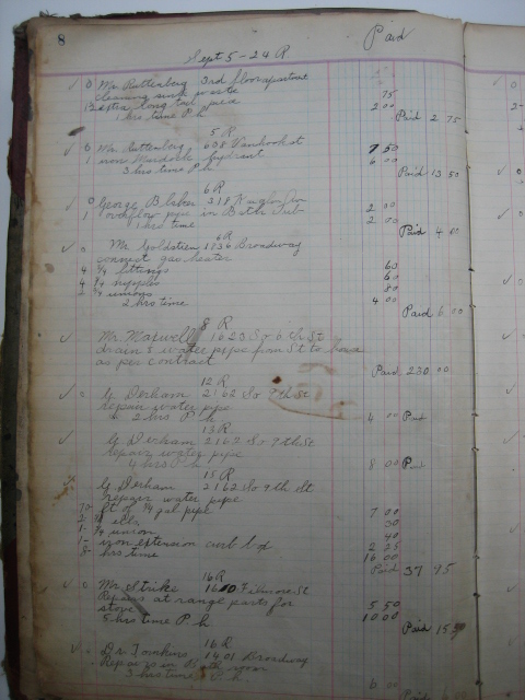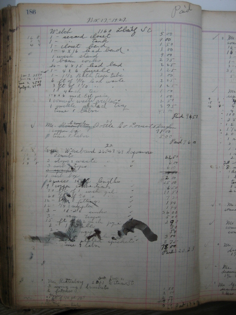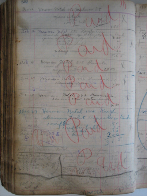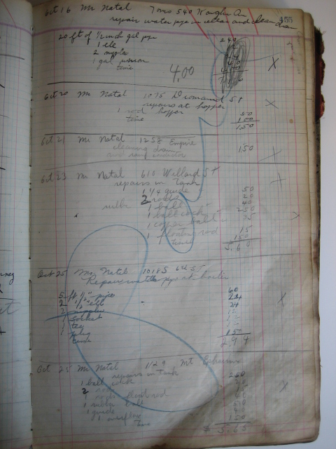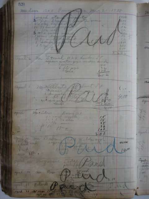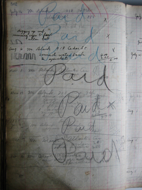 Ross Plumbing was the business of the Ross family, and bore the name of its founder, Isreal Ross, who went into business as a plumbing and heating contractor in 1918. He had previously partnered with Francis Bicker Jr., son of Dr. Francis Bicker, a well known physician in Camden's Eighth Ward. He may still have been in business with Bicker into the 1920s. By January of 1920 Isreal Ross and his wife, the former Annie Silverman, had bought a house at 1145 Baring Street. Annie Silverman was the daughter of Becky Silverman, who owned an operated a clothing business at 299 Kaighn Avenue, the corner of South 3rd Street and Kaighn Avenue. A set of journals that begin in 1924 seem to indicate that the partnership with Francis Bicker Jr. had dissolved, and that Isreal Ross had started his own business. These journals, presented here, show every job that Isreal Ross undertook, indicate that he worked for many people who were or would become well known in Camden. He also had begun doing work for various real estate operators. Sometime after the fall of 1936 Israel Ross acquired the building at 1142 South 6th Street, where the Tarter family had once conducted a bottling business. Isreal Ross lived and operated his business here, the Ross Plumbing & Heating Company, through at least 1947. By that time sons Edward and Leonard had joined the business. Ross Plumbing and Heating did a great portion of its business with Camden real estate operators and landlords. Some of the larger and more notable clients in the 1930s and 1940s included Benjamin Natal, Theodore Tiedeken, Samuel Gelfand, Louis Richelson, Louis Dorflinger, Ellis Goodman, Zellie Ellis, Joseph and William Lipkin, and Alex Malamut. There was also institutional work, for the Talmud Torah building, churches and synagogues, and Belleview Hospital. They also did work for several Camden physicians, including Dr. Ulysses Wiggins, Dr. William Lashman, and Dr. Marcus Wheatland. Commercial accounts included Trilling & Montague, a company involved with many of the bar businesses in Camden, Quality Drugs, and several businesses on Broadway, Kaighn Avenue, and throughout the city. They also worked for several Building and Loan Associations and the Federal Deposit Insurance Corporation's real estate operation. Isreal Ross passed away on April 12, 1962. He was buried the following day at Crescent Burial Park in Pennsauken NJ. He was survived by his wife and sons, who carried the business forward. Anna Silverman Ross passed away in Cherry Hill NJ in 1993. The Ross Plumbing and Heating Company was still operating on South 6th Street as late as the fall of 1977, and owned the property into the late 1990s. For more about the the family and business of Isreal and Anna Ross, please visit the following web-pages on on this site: