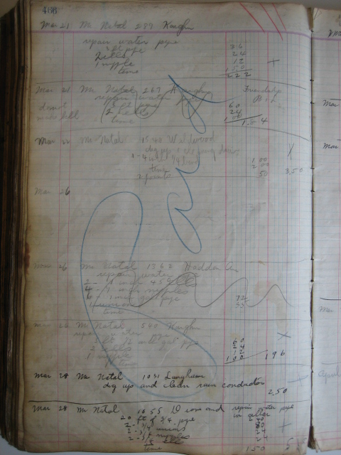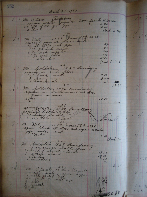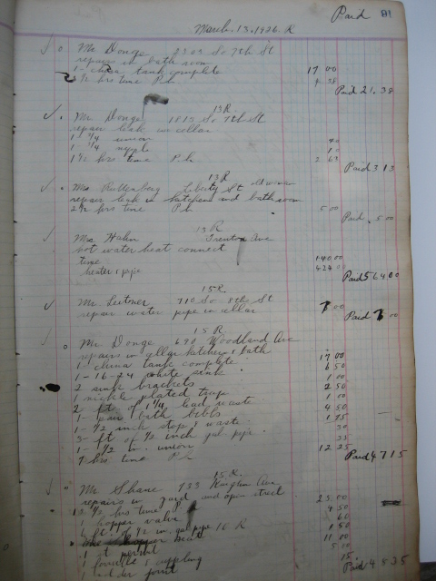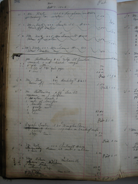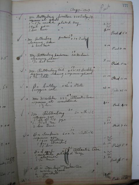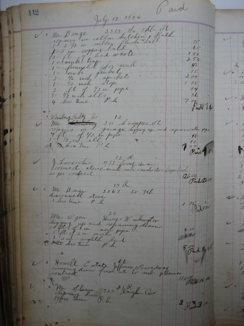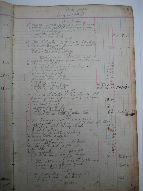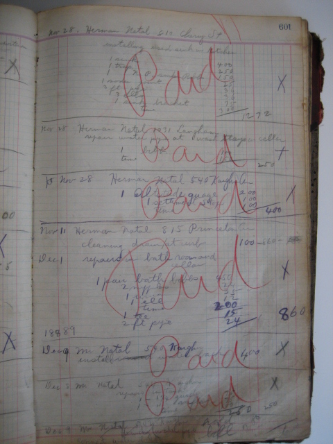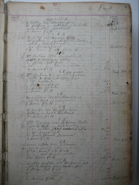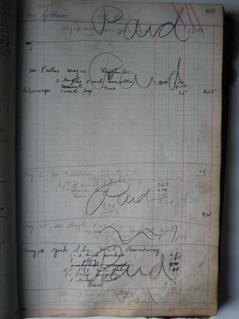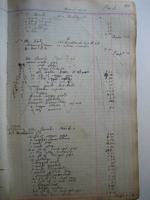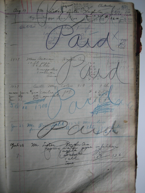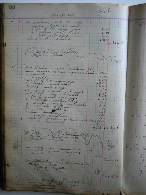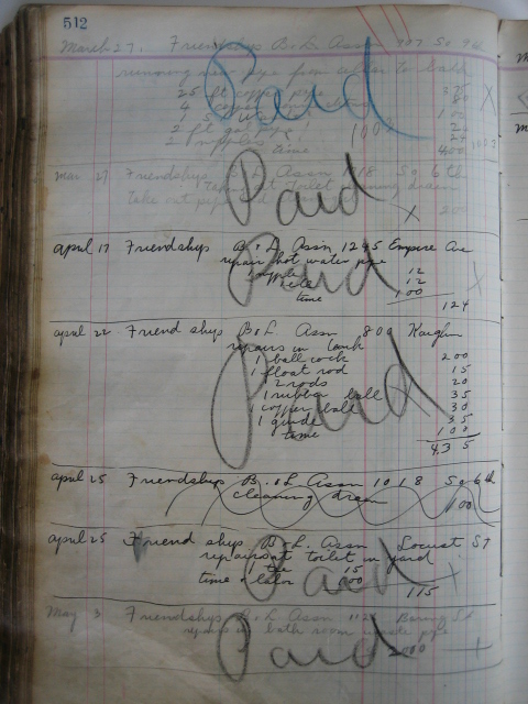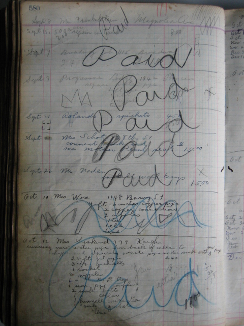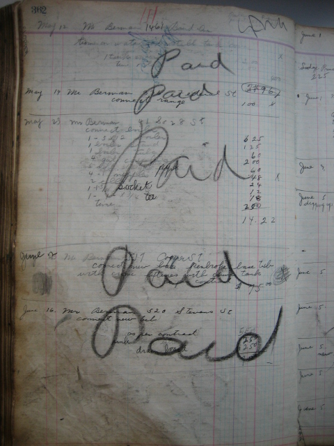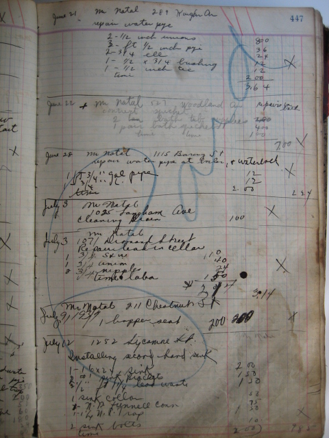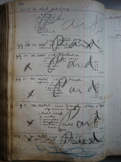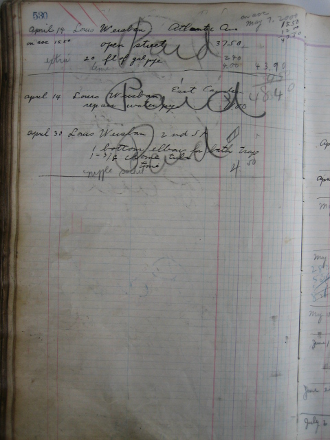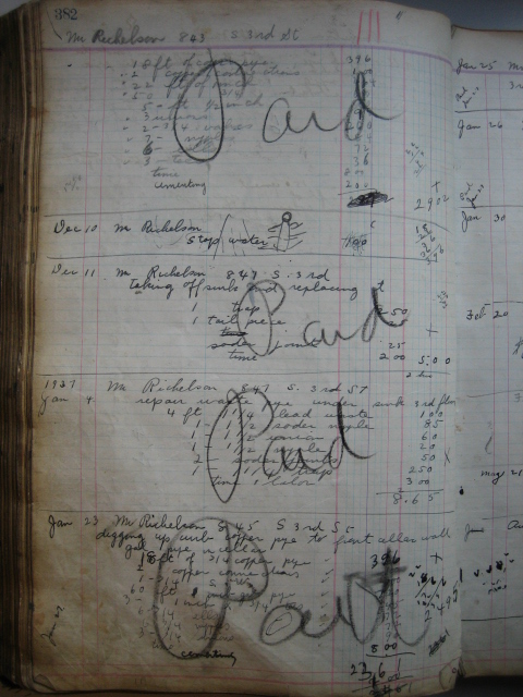 Ross Plumbing was the business of the Ross family, and bore the name of its founder, Isreal Ross, who went into business as a plumbing and heating contractor in 1918. He had previously partnered with Francis Bicker Jr., son of Dr. Francis Bicker, a well known physician in Camden's Eighth Ward. He may still have been in business with Bicker into the 1920s. By January of 1920 Isreal Ross and his wife, the former Annie Silverman, had bought a house at 1145 Baring Street. Annie Silverman was the daughter of Becky Silverman, who owned an operated a clothing business at 299 Kaighn Avenue, the corner of South 3rd Street and Kaighn Avenue. A set of journals that begin in 1924 seem to indicate that the partnership with Francis Bicker Jr. had dissolved, and that Isreal Ross had started his own business. These journals, presented here, show every job that Isreal Ross undertook, indicate that he worked for many people who were or would become well known in Camden. He also had begun doing work for various real estate operators. Sometime after the fall of 1936 Israel Ross acquired the building at 1142 South 6th Street, where the Tarter family had once conducted a bottling business. Isreal Ross lived and operated his business here, the Ross Plumbing & Heating Company, through at least 1947. By that time sons Edward and Leonard had joined the business. Ross Plumbing and Heating did a great portion of its business with Camden real estate operators and landlords. Some of the larger and more notable clients in the 1930s and 1940s included Benjamin Natal, Theodore Tiedeken, Samuel Gelfand, Louis Richelson, Louis Dorflinger, Ellis Goodman, Zellie Ellis, Joseph and William Lipkin, and Alex Malamut. There was also institutional work, for the Talmud Torah building, churches and synagogues, and Belleview Hospital. They also did work for several Camden physicians, including Dr. Ulysses Wiggins, Dr. William Lashman, and Dr. Marcus Wheatland. Commercial accounts included Trilling & Montague, a company involved with many of the bar businesses in Camden, Quality Drugs, and several businesses on Broadway, Kaighn Avenue, and throughout the city. They also worked for several Building and Loan Associations and the Federal Deposit Insurance Corporation's real estate operation. Isreal Ross passed away on April 12, 1962. He was buried the following day at Crescent Burial Park in Pennsauken NJ. He was survived by his wife and sons, who carried the business forward. Anna Silverman Ross passed away in Cherry Hill NJ in 1993. The Ross Plumbing and Heating Company was still operating on South 6th Street as late as the fall of 1977, and owned the property into the late 1990s. For more about the the family and business of Isreal and Anna Ross, please visit the following web-pages on on this site: