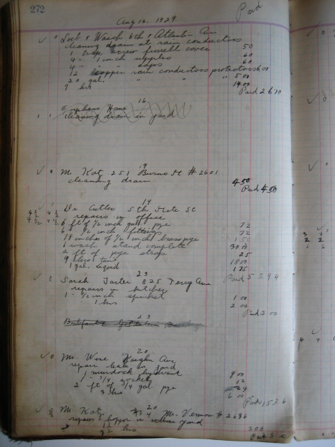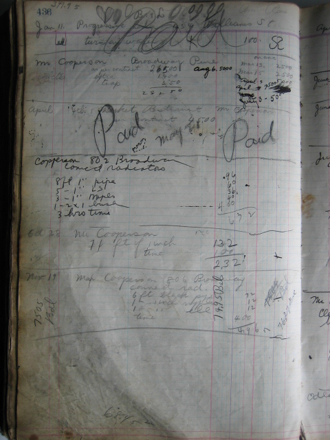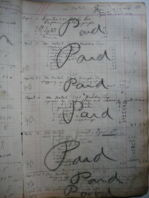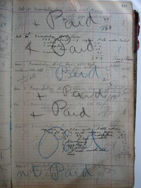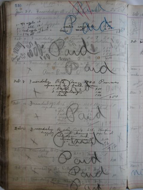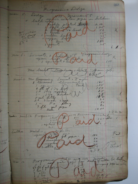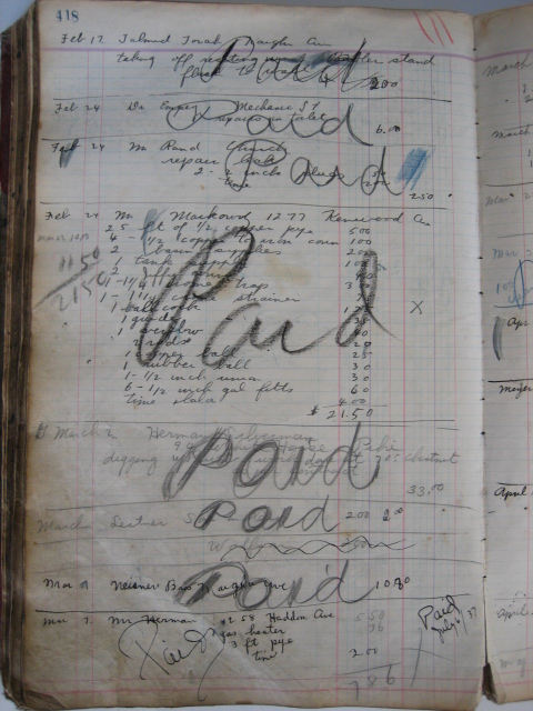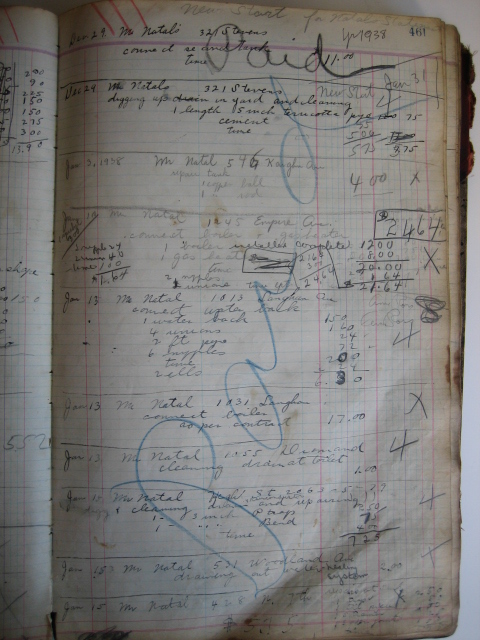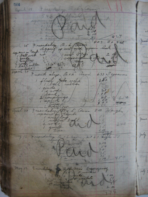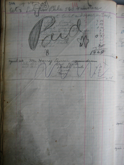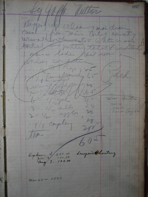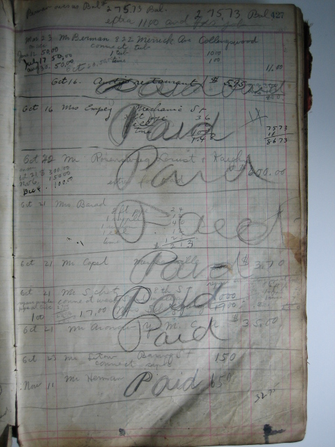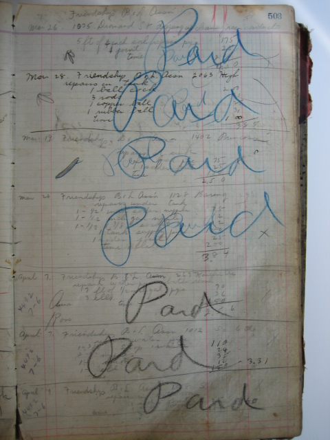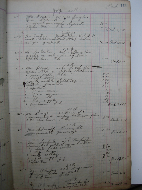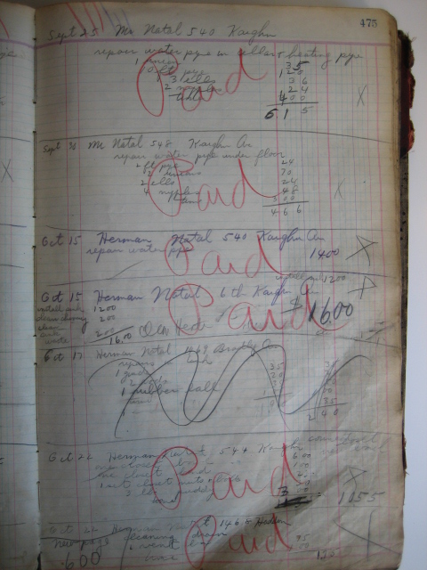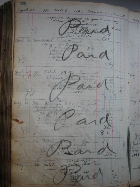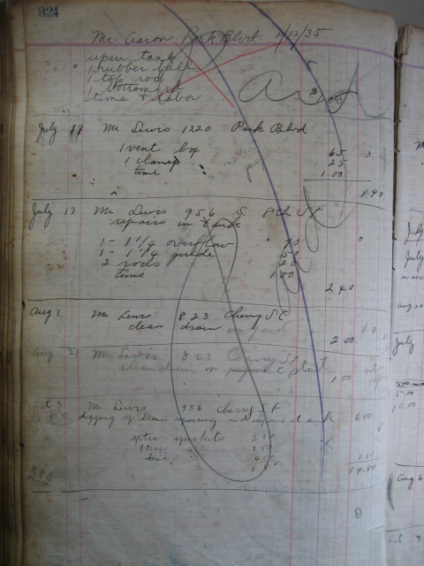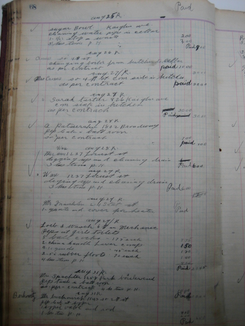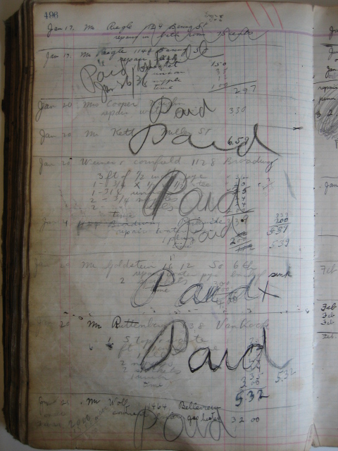Ross Plumbing was the business of the Ross family, and bore the name of its founder, Isreal Ross, who went into business as a plumbing and heating contractor in 1918. He had previously partnered with Francis Bicker Jr., son of Dr. Francis Bicker, a well known physician in Camden's Eighth Ward. He may still have been in business with Bicker into the 1920s. By January of 1920 Isreal Ross and his wife, the former Annie Silverman, had bought a house at 1145 Baring Street. Annie Silverman was the daughter of Becky Silverman, who owned an operated a clothing business at 299 Kaighn Avenue, the corner of South 3rd Street and Kaighn Avenue. A set of journals that begin in 1924 seem to indicate that the partnership with Francis Bicker Jr. had dissolved, and that Isreal Ross had started his own business. These journals, presented here, show every job that Isreal Ross undertook, indicate that he worked for many people who were or would become well known in Camden. He also had begun doing work for various real estate operators. Sometime after the fall of 1936 Israel Ross acquired the building at 1142 South 6th Street, where the Tarter family had once conducted a bottling business. Isreal Ross lived and operated his business here, the Ross Plumbing & Heating Company, through at least 1947. By that time sons Edward and Leonard had joined the business. Ross Plumbing and Heating did a great portion of its business with Camden real estate operators and landlords. Some of the larger and more notable clients in the 1930s and 1940s included Benjamin Natal, Theodore Tiedeken, Samuel Gelfand, Louis Richelson, Louis Dorflinger, Ellis Goodman, Zellie Ellis, Joseph and William Lipkin, and Alex Malamut. There was also institutional work, for the Talmud Torah building, churches and synagogues, and Belleview Hospital. They also did work for several Camden physicians, including Dr. Ulysses Wiggins, Dr. William Lashman, and Dr. Marcus Wheatland. Commercial accounts included Trilling & Montague, a company involved with many of the bar businesses in Camden, Quality Drugs, and several businesses on Broadway, Kaighn Avenue, and throughout the city. They also worked for several Building and Loan Associations and the Federal Deposit Insurance Corporation's real estate operation. Isreal Ross passed away on April 12, 1962. He was buried the following day at Crescent Burial Park in Pennsauken NJ. He was survived by his wife and sons, who carried the business forward. Anna Silverman Ross passed away in Cherry Hill NJ in 1993. The Ross Plumbing and Heating Company was still operating on South 6th Street as late as the fall of 1977, and owned the property into the late 1990s. For more about the the family and business of Isreal and Anna Ross, please visit the following web-pages on on this site:
