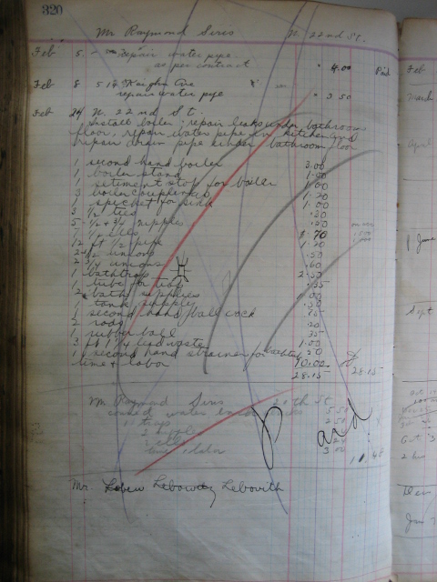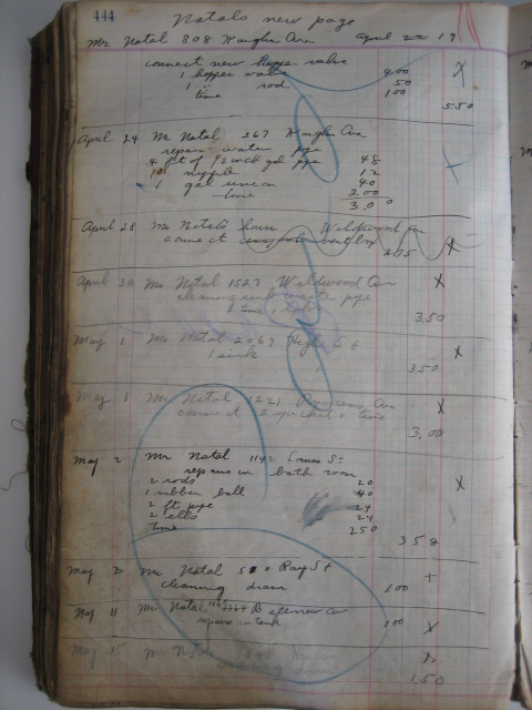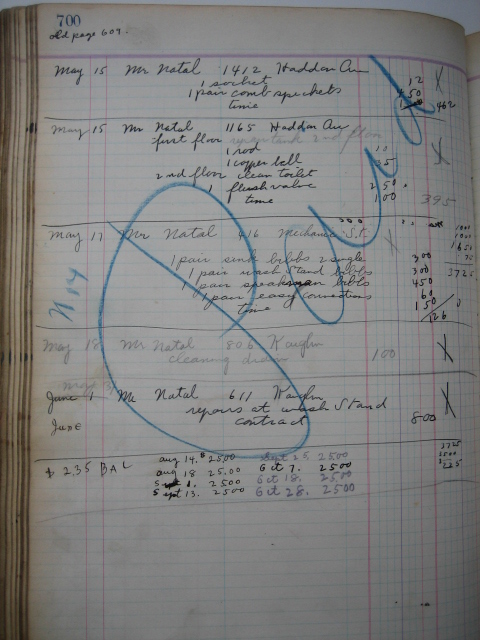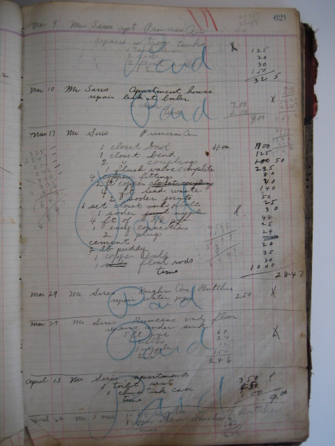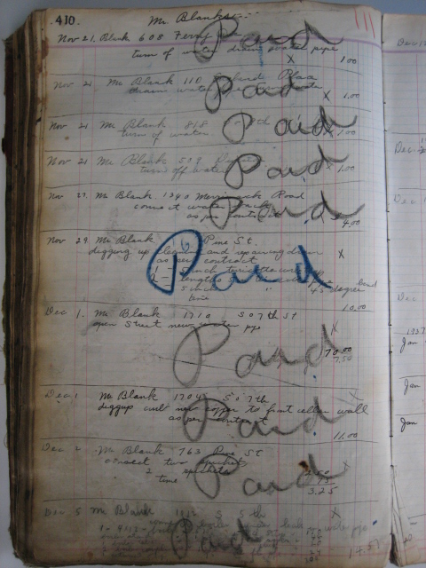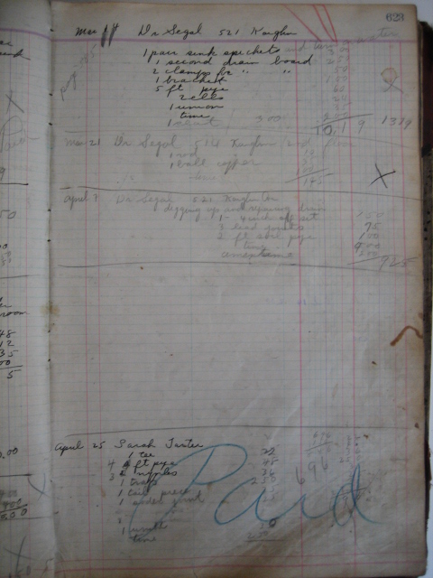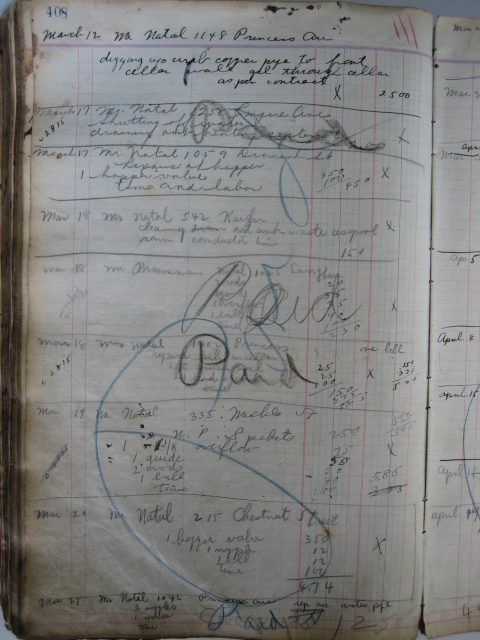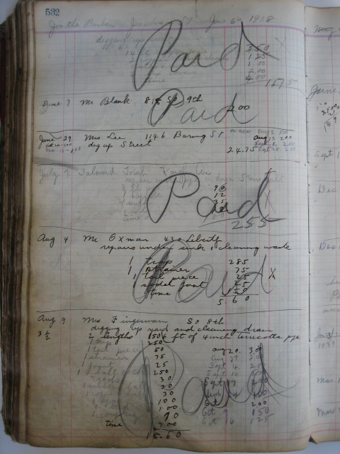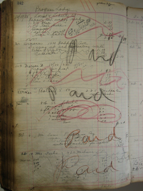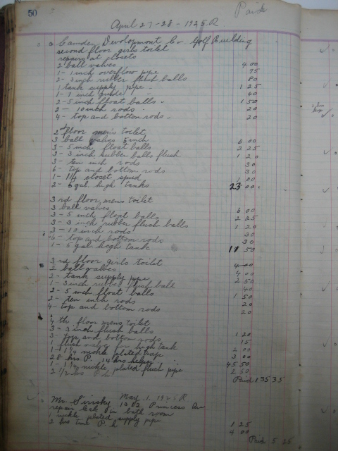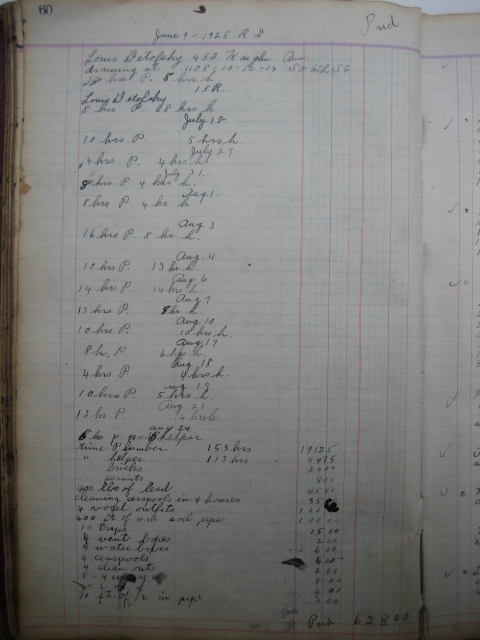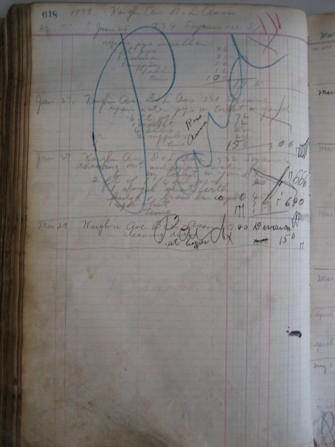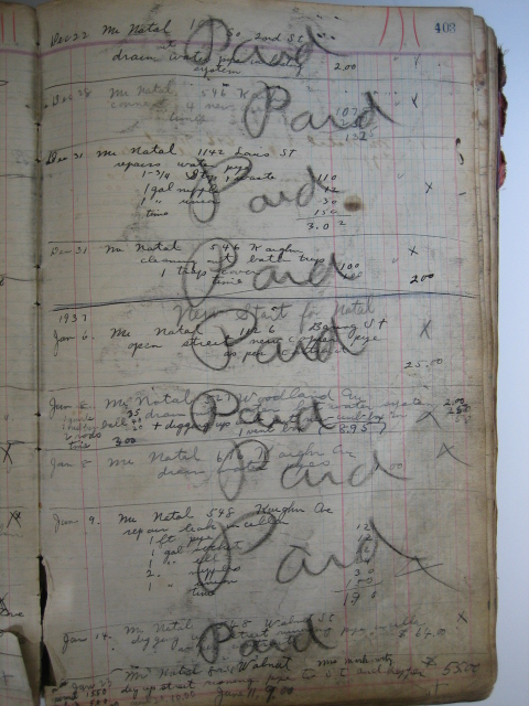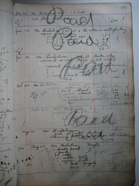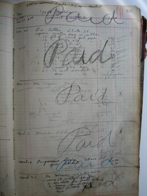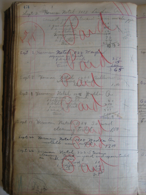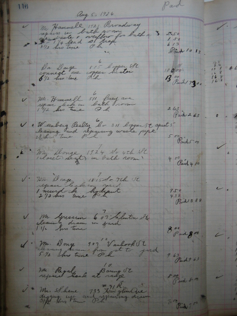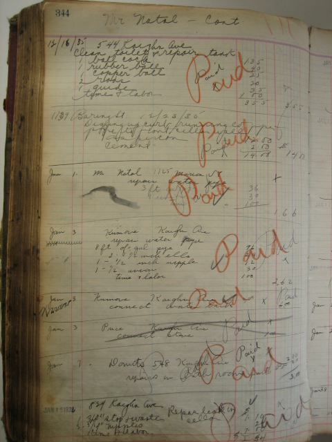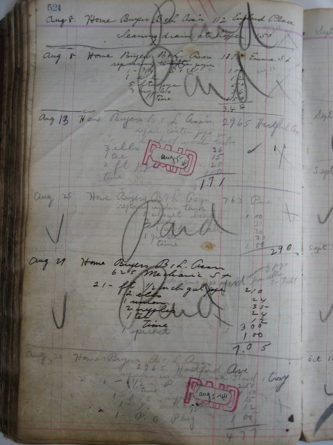 Ross Plumbing was the business of the Ross family, and bore the name of its founder, Isreal Ross, who went into business as a plumbing and heating contractor in 1918. He had previously partnered with Francis Bicker Jr., son of Dr. Francis Bicker, a well known physician in Camden's Eighth Ward. He may still have been in business with Bicker into the 1920s. By January of 1920 Isreal Ross and his wife, the former Annie Silverman, had bought a house at 1145 Baring Street. Annie Silverman was the daughter of Becky Silverman, who owned an operated a clothing business at 299 Kaighn Avenue, the corner of South 3rd Street and Kaighn Avenue. A set of journals that begin in 1924 seem to indicate that the partnership with Francis Bicker Jr. had dissolved, and that Isreal Ross had started his own business. These journals, presented here, show every job that Isreal Ross undertook, indicate that he worked for many people who were or would become well known in Camden. He also had begun doing work for various real estate operators. Sometime after the fall of 1936 Israel Ross acquired the building at 1142 South 6th Street, where the Tarter family had once conducted a bottling business. Isreal Ross lived and operated his business here, the Ross Plumbing & Heating Company, through at least 1947. By that time sons Edward and Leonard had joined the business. Ross Plumbing and Heating did a great portion of its business with Camden real estate operators and landlords. Some of the larger and more notable clients in the 1930s and 1940s included Benjamin Natal, Theodore Tiedeken, Samuel Gelfand, Louis Richelson, Louis Dorflinger, Ellis Goodman, Zellie Ellis, Joseph and William Lipkin, and Alex Malamut. There was also institutional work, for the Talmud Torah building, churches and synagogues, and Belleview Hospital. They also did work for several Camden physicians, including Dr. Ulysses Wiggins, Dr. William Lashman, and Dr. Marcus Wheatland. Commercial accounts included Trilling & Montague, a company involved with many of the bar businesses in Camden, Quality Drugs, and several businesses on Broadway, Kaighn Avenue, and throughout the city. They also worked for several Building and Loan Associations and the Federal Deposit Insurance Corporation's real estate operation. Isreal Ross passed away on April 12, 1962. He was buried the following day at Crescent Burial Park in Pennsauken NJ. He was survived by his wife and sons, who carried the business forward. Anna Silverman Ross passed away in Cherry Hill NJ in 1993. The Ross Plumbing and Heating Company was still operating on South 6th Street as late as the fall of 1977, and owned the property into the late 1990s. For more about the the family and business of Isreal and Anna Ross, please visit the following web-pages on on this site: