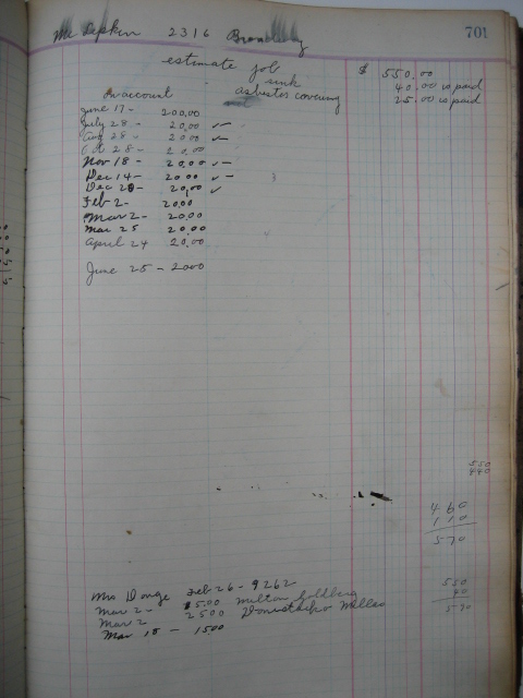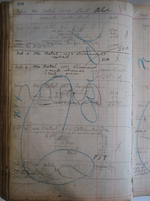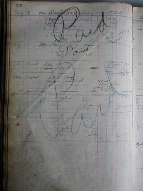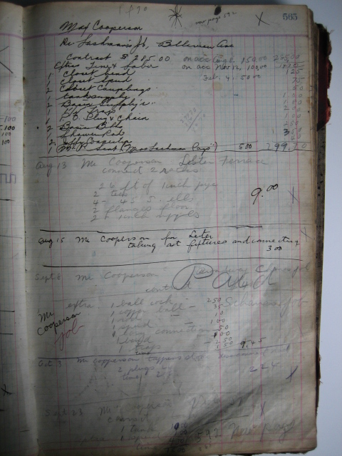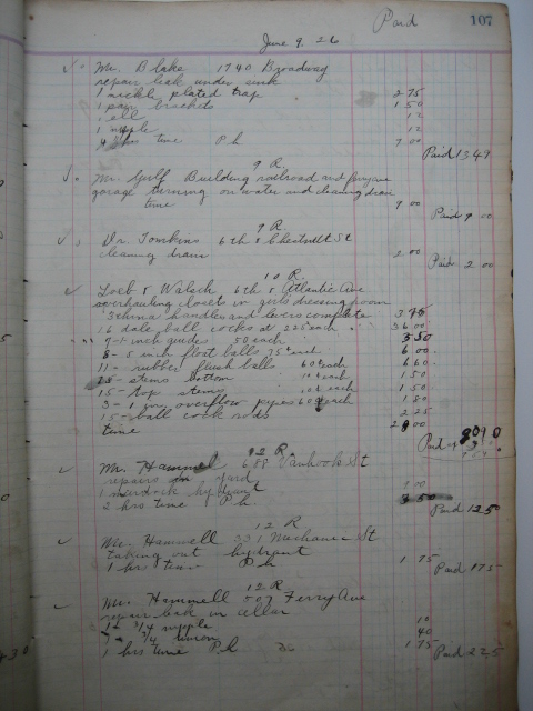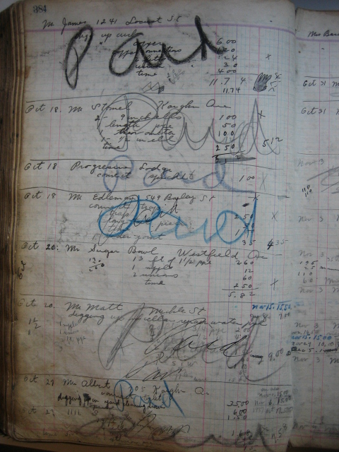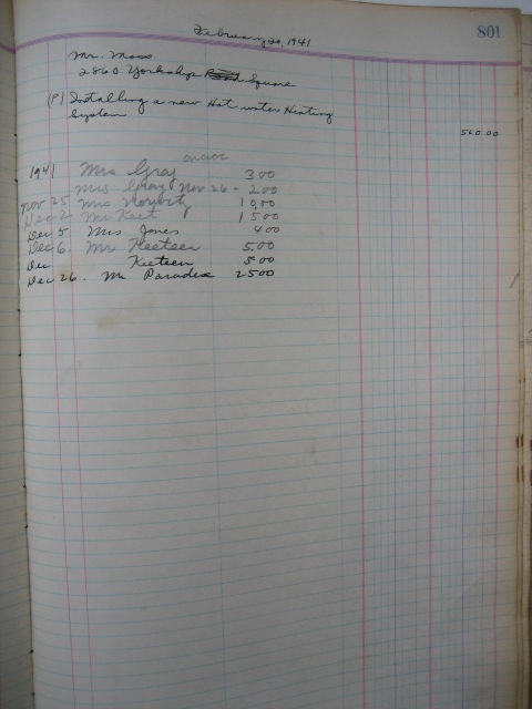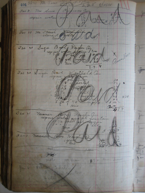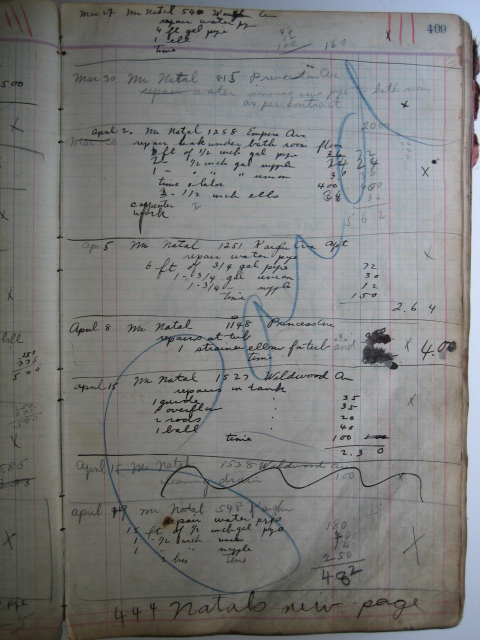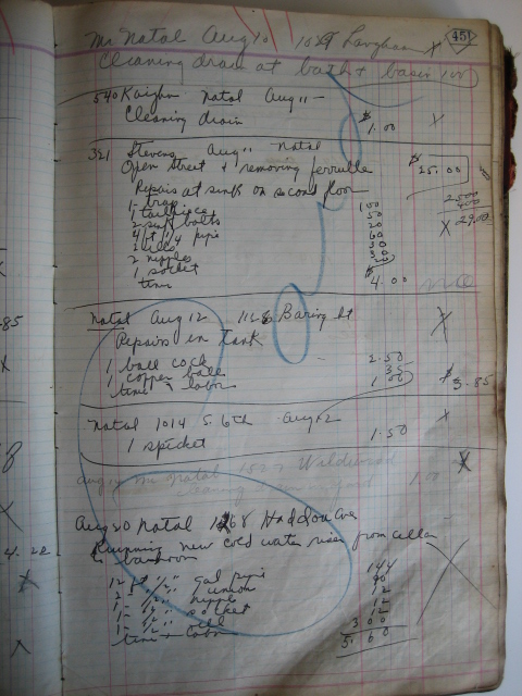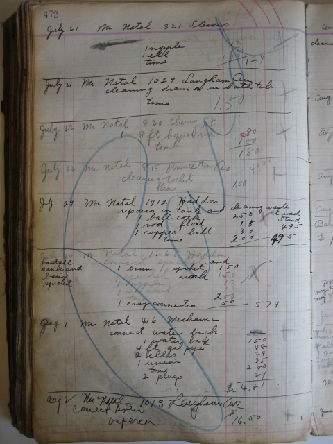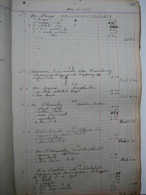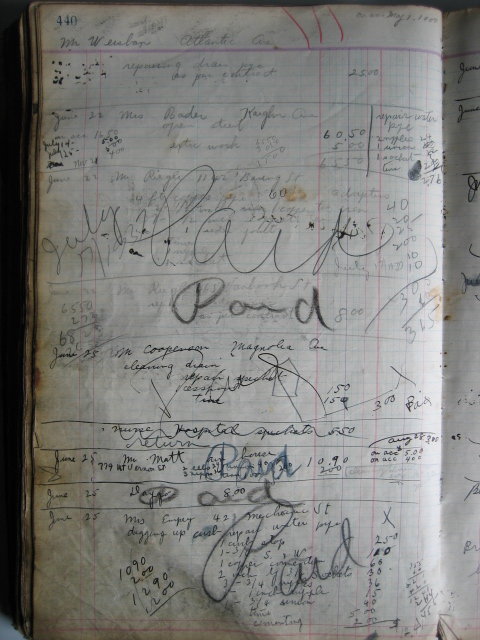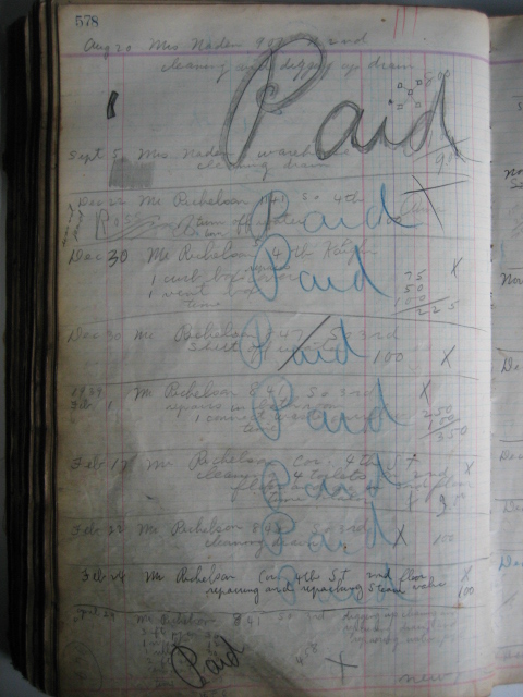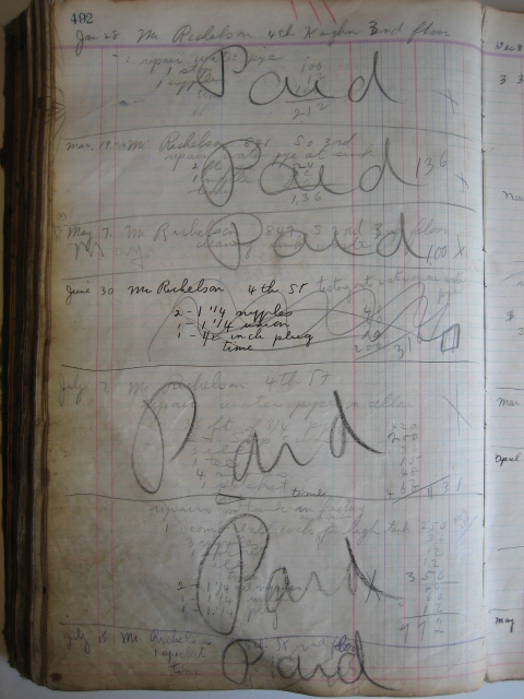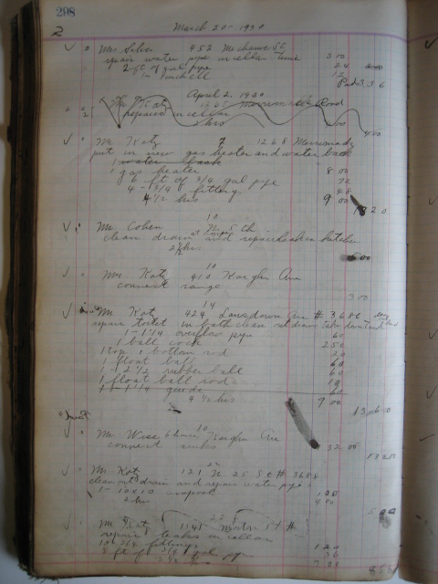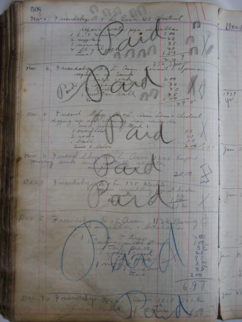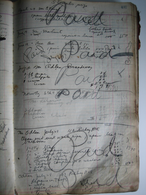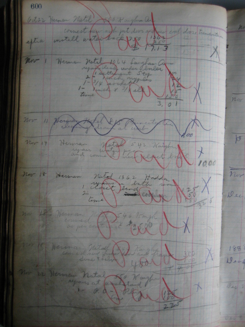 Ross Plumbing was the business of the Ross family, and bore the name of its founder, Isreal Ross, who went into business as a plumbing and heating contractor in 1918. He had previously partnered with Francis Bicker Jr., son of Dr. Francis Bicker, a well known physician in Camden's Eighth Ward. He may still have been in business with Bicker into the 1920s. By January of 1920 Isreal Ross and his wife, the former Annie Silverman, had bought a house at 1145 Baring Street. Annie Silverman was the daughter of Becky Silverman, who owned an operated a clothing business at 299 Kaighn Avenue, the corner of South 3rd Street and Kaighn Avenue. A set of journals that begin in 1924 seem to indicate that the partnership with Francis Bicker Jr. had dissolved, and that Isreal Ross had started his own business. These journals, presented here, show every job that Isreal Ross undertook, indicate that he worked for many people who were or would become well known in Camden. He also had begun doing work for various real estate operators. Sometime after the fall of 1936 Israel Ross acquired the building at 1142 South 6th Street, where the Tarter family had once conducted a bottling business. Isreal Ross lived and operated his business here, the Ross Plumbing & Heating Company, through at least 1947. By that time sons Edward and Leonard had joined the business. Ross Plumbing and Heating did a great portion of its business with Camden real estate operators and landlords. Some of the larger and more notable clients in the 1930s and 1940s included Benjamin Natal, Theodore Tiedeken, Samuel Gelfand, Louis Richelson, Louis Dorflinger, Ellis Goodman, Zellie Ellis, Joseph and William Lipkin, and Alex Malamut. There was also institutional work, for the Talmud Torah building, churches and synagogues, and Belleview Hospital. They also did work for several Camden physicians, including Dr. Ulysses Wiggins, Dr. William Lashman, and Dr. Marcus Wheatland. Commercial accounts included Trilling & Montague, a company involved with many of the bar businesses in Camden, Quality Drugs, and several businesses on Broadway, Kaighn Avenue, and throughout the city. They also worked for several Building and Loan Associations and the Federal Deposit Insurance Corporation's real estate operation. Isreal Ross passed away on April 12, 1962. He was buried the following day at Crescent Burial Park in Pennsauken NJ. He was survived by his wife and sons, who carried the business forward. Anna Silverman Ross passed away in Cherry Hill NJ in 1993. The Ross Plumbing and Heating Company was still operating on South 6th Street as late as the fall of 1977, and owned the property into the late 1990s. For more about the the family and business of Isreal and Anna Ross, please visit the following web-pages on on this site: