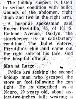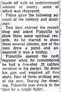 Rocco Pizzutillo owned and operated this business during the 1960s. He was involved in a gun battle with several robbers on the evening of July 20, 1967. |