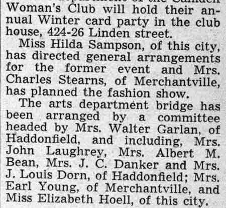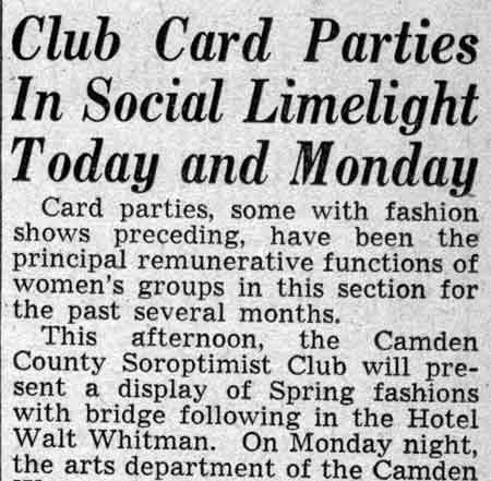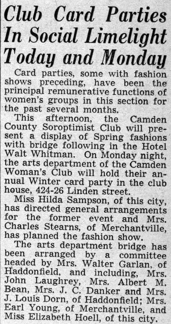 Soroptomist Club - Hotel Walt Whitman - Hilda Sampson - Elizabeth Hoell - Linden Street |