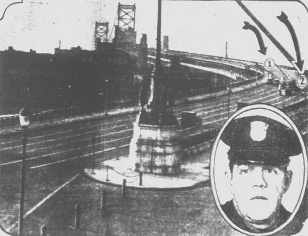 Then at 4:30 o’clock this morning, Bridge Policeman John J. Rodgers was twice fired upon on the span. The second time, he was struck between the shoulders, spun around and knocked down.