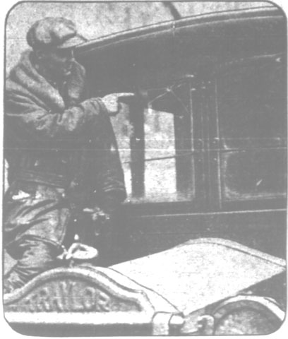 “One of these men sat directly behind the driver. There are marks on the woodwork there to show where the man rubbed the revolver when he put it beside the driver’s face and fired the bullet through he glass.”