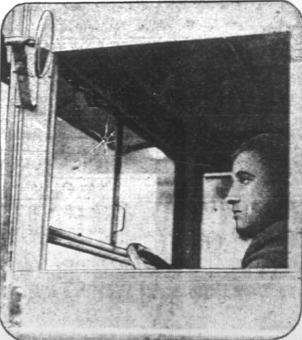 The missile struck the glass almost directly in front of Frank Hefferson, the operator. Hefferson stopped his bus and jumped out but failed to see who might have fired the shot. A search of the bus failed to produce any missile. The hole in the windshield was large enough to admit the passage of a marble. There were no passengers on the bus when the windshield was broken.